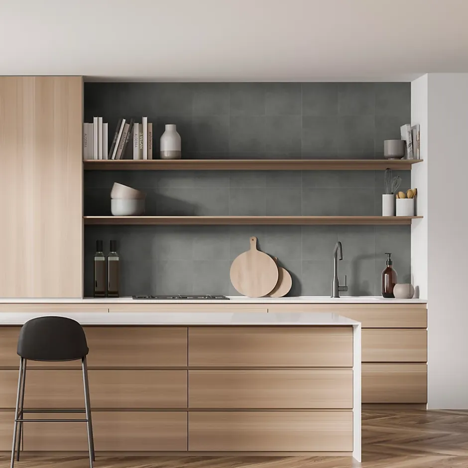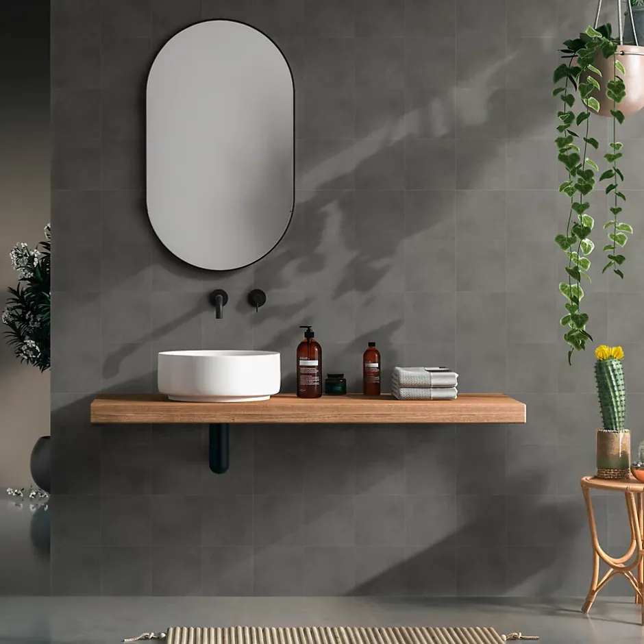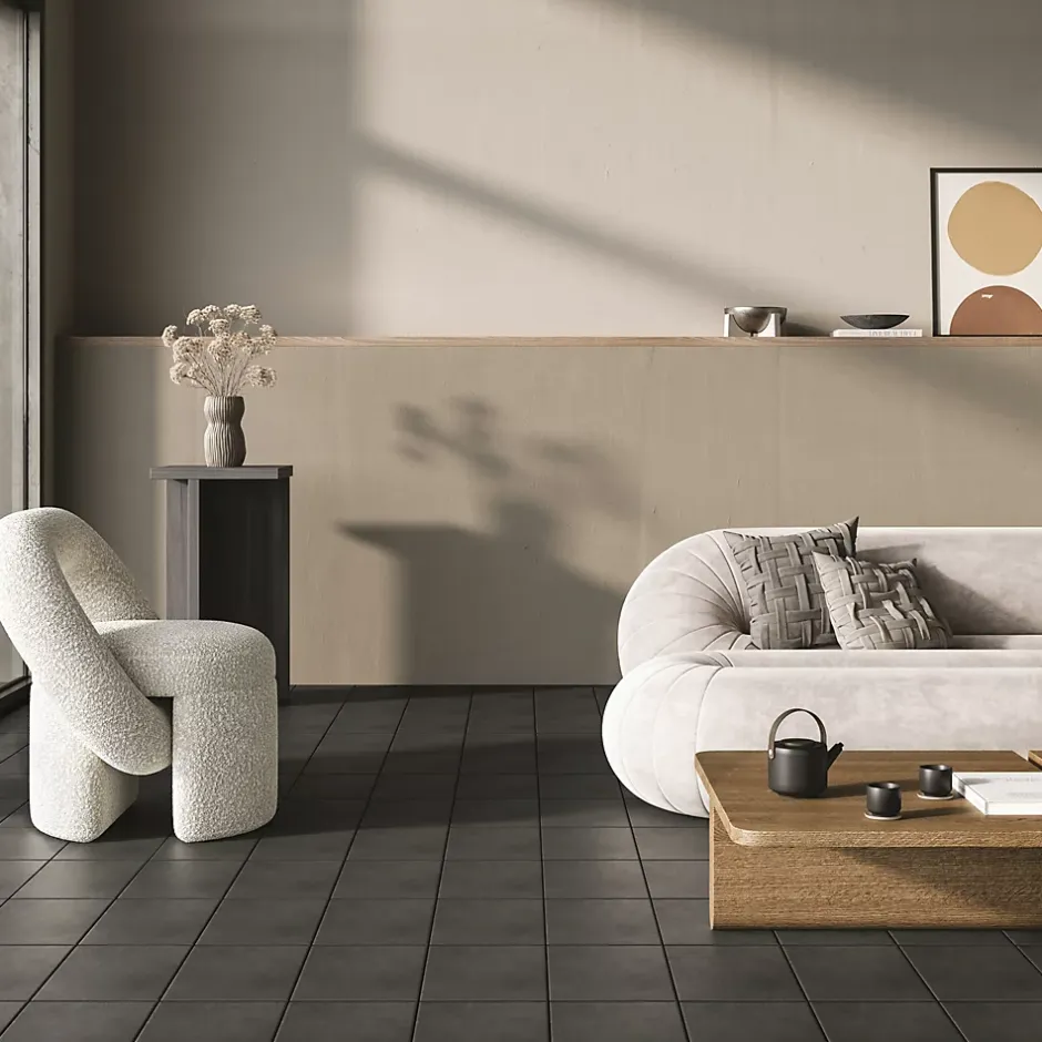 - La finition mate du carrelage offre un aspect sobre et moderne, s’intégrant facilement à différents styles.