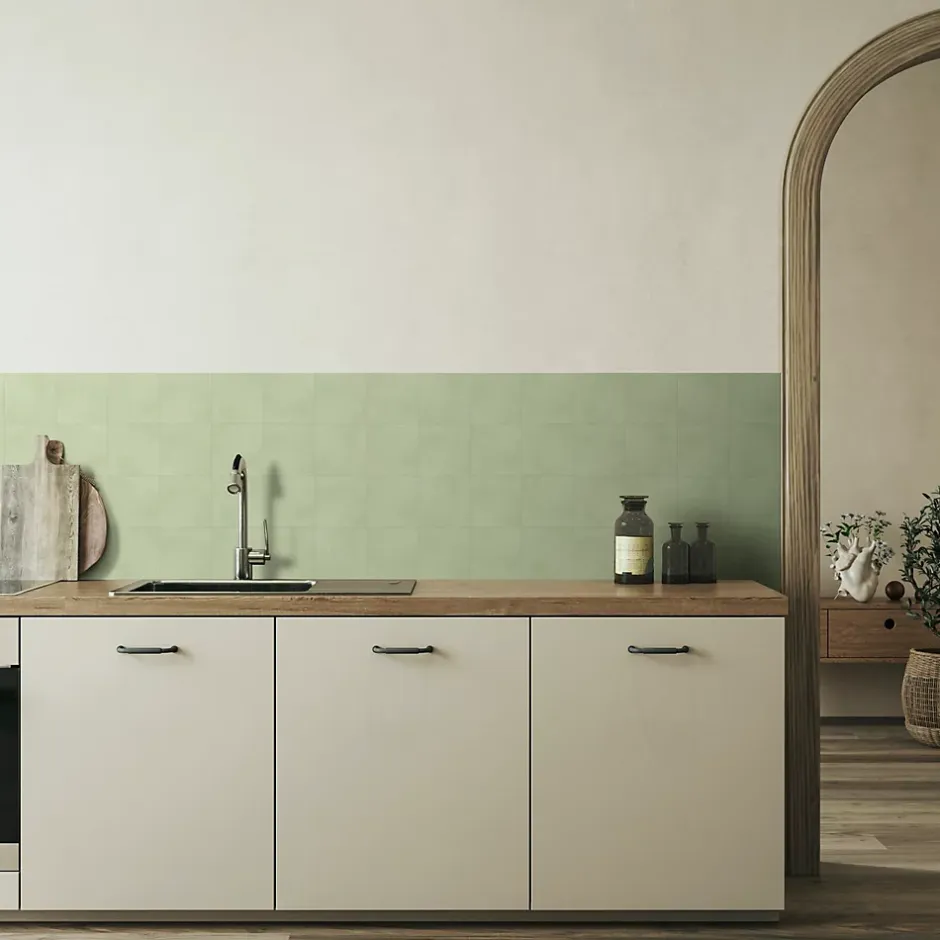 Carrelage sol et mur intérieur uni vert menthe L.20 x l.20 cm x 7,4 mm, Glamour Mint