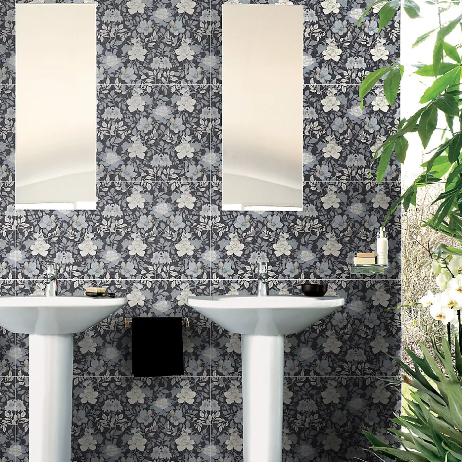 - Les décors Floral, réalisés avec la technologie High Digital , s’inspirent de la nature et créent des arrière-plans saisissants. Ils sont fabriqués en grès cérame, un matériau idéal pour la salle de bains.