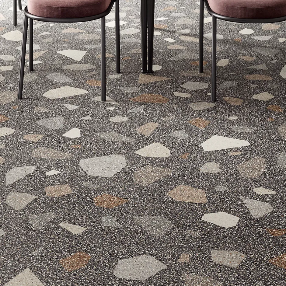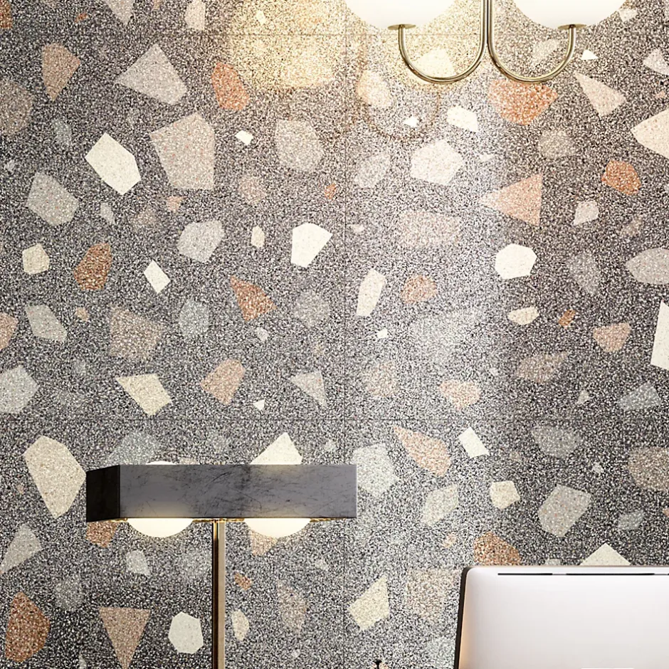 - VENISE reproduit en céramique, avec un réalisme extrême ,l’effet de sols en terrasse vénitienne à grain fin, avec une distribution homogène des divers fragments sur une base en ciment coloré. Le résultat est un tapis de fond uniforme.
