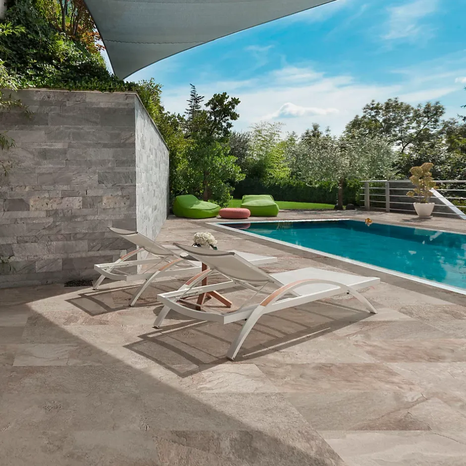 - Son adhérence élevée (R11) garantit une surface antidérapante, assurant la sécurité de vos espaces extérieurs, même par temps humide.