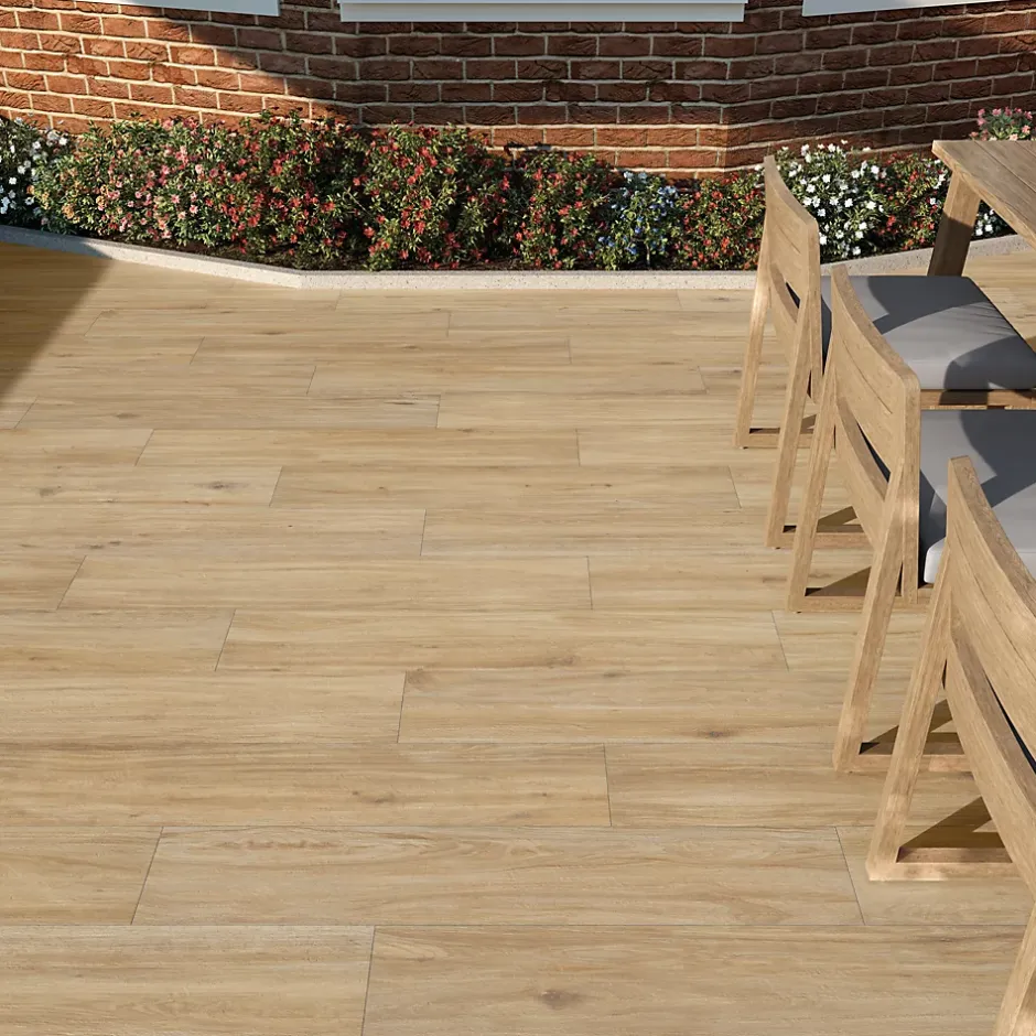 - Carrelage en grès cérame émaillé extérieur – finition effet chêne réaliste