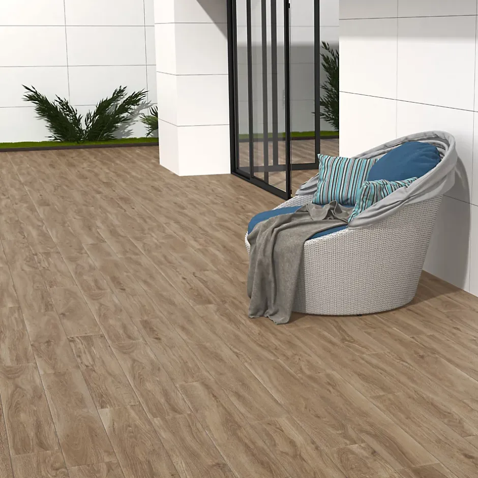 Le carrelage Timberlane d’Ecoceramic, en format rectangulaire 15 x 90 cm, reproduit fidèlement l’aspect d’un bois naturel grâce à ses nuances chaleureuses et sa finition mate texturée. Idéal pour une terrasse authentique et contemporaine, il bénéficie d’une surface émaillée résistante aux taches, à l’usure et aux variations climatiques. Son adhérence élevée garantit une utilisation sécurisée, même en extérieur humide. Non rectifié pour un rendu brut et naturel, il est conçu en grès cérame de 8,6 mm résistant au gel. Fabriqué en Espagne, il convient parfaitement aux murs et sols extérieurs.