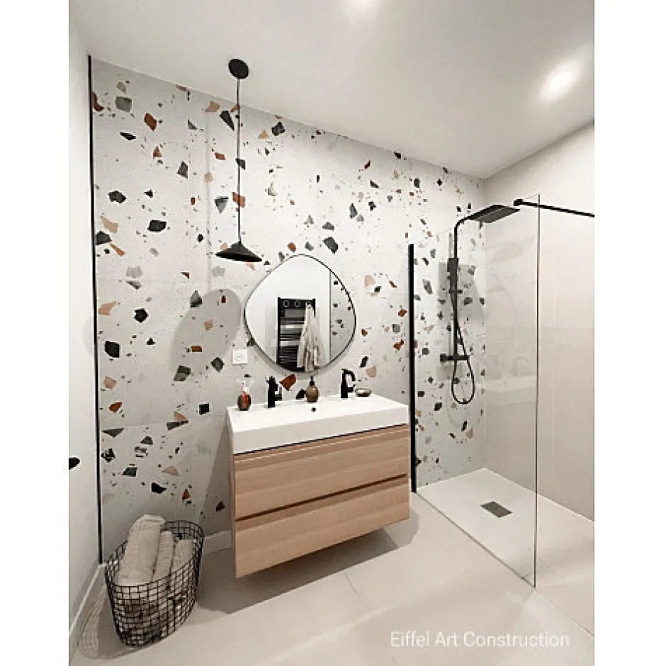 Matière: Grès cerame // Dimensions: 60×120 cm // Usage: Intérieur // Destination: Mur & sol // Finition: Mat // Rectifié: Oui // Epaisseur: 10,5 mm // Nuances : Légèrement nuancé // Existe en : 7 coloris