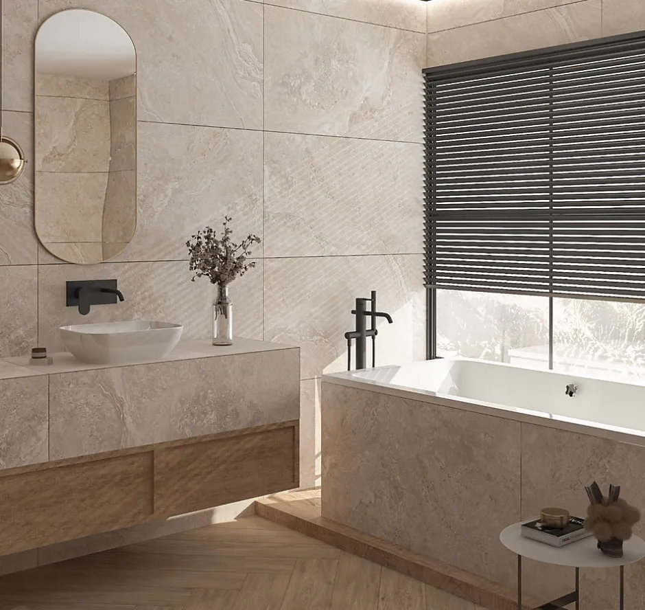 Apportez charme et authenticité à vos espaces avec ce carrelage effet pierre naturelle. Son ton beige clair, agrémenté de nuances douces et de veinages subtils, imite parfaitement le travertin pour un rendu chaleureux et élégant. Idéal pour créer une atmosphère apaisante et lumineuse, aussi bien dans une salle de bain que dans une pièce à vivre.