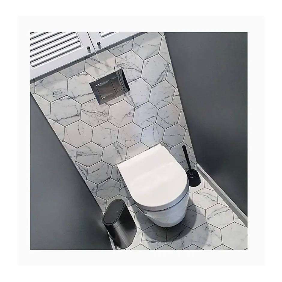 Matière: Grès cérame Dimensions: 17,5 x 20 cm Usage : Intérieur & Extérieur (Terrasse couverte) Destination: Sol & Mur Finition: Mate R9 – A Rectifié: Non Epaisseur: 8 mm Nuances: légères variations Existe en : 1 uni & 2 décors assortis . . Le luxe et l’élégance se rencontrent à travers chaque centimètre de ce carrelage en grès cérame, avec son motif effet marbre mate et ses design géométriques. Comme un joyau rare et précieux, chaque carreau conte une histoire de sophistication et de raffinement. L’effet marbre de ce carreau évoque la grandeur des sculptures antiques et des monuments qui ont perduré à travers les siècles. Cette collection vous est proposée dans un format hexagonal et se décline dans trois décors différents. Elle est bien plus qu’un simple revêtement mural. C’est une ?uvre majeure de l?artisanat, capable de transformer n’importe quelle pièce en un cadre luxueux. Que ce soit pour une salle de bain, une cuisine, la collection CARRARA est une déclaration de style et de sophistication moderne. . N’hésitez pas à nous contacter pour demander un échantillon. .