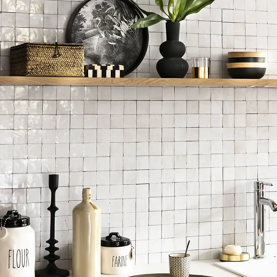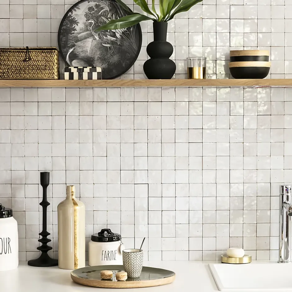 Découvrez notre Carrelage Zellige Marocain Blanc Fes 5×5 cm (vendu par plaque de 30×30 cm soit 0,09 m²) – INFORMATIONS -> Ce produit est en Terre cuite. Comme tous les matériaux naturels, des variations sont possibles entre les produits présentés et ceux livrés ainsi qu’entre les produits livrés eux-mêmes. De manière non limitative, ces variations peuvent porter sur la couleur, le veinage, l’aspect, la dimension, l’épaisseur, et autres défauts purement esthétiques qui n’altèrent en rien les caractéristiques techniques des produits.> Ce produit est destiné exclusivement à un usage mural. Tout usage en plan de travail, en table ou en surface en contact avec des aliments est interdite.> Nos photos sont réalisées par des professionnels avec l’objectif de représenter les produits de la façon la plus fidèle possible. Cependant, en fonction de votre écran et des paramètres appliqués, l’aspect et les couleurs du produit sur votre écran peuvent légèrement différer du produit original.