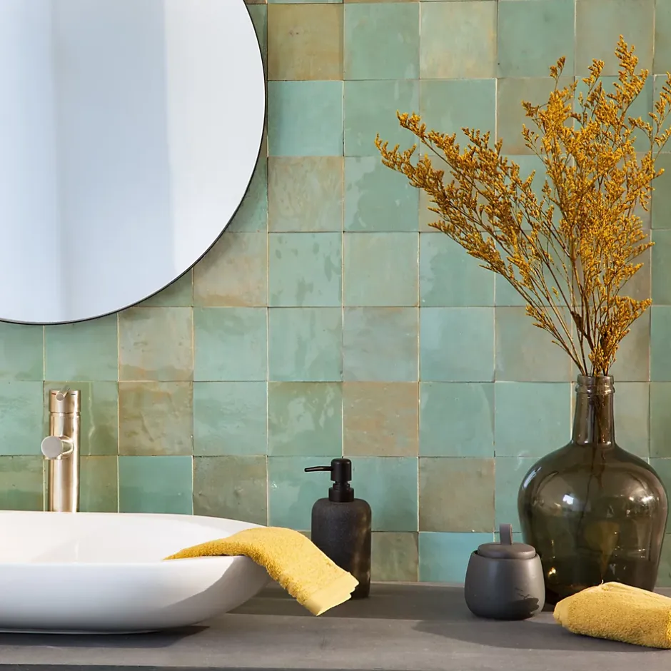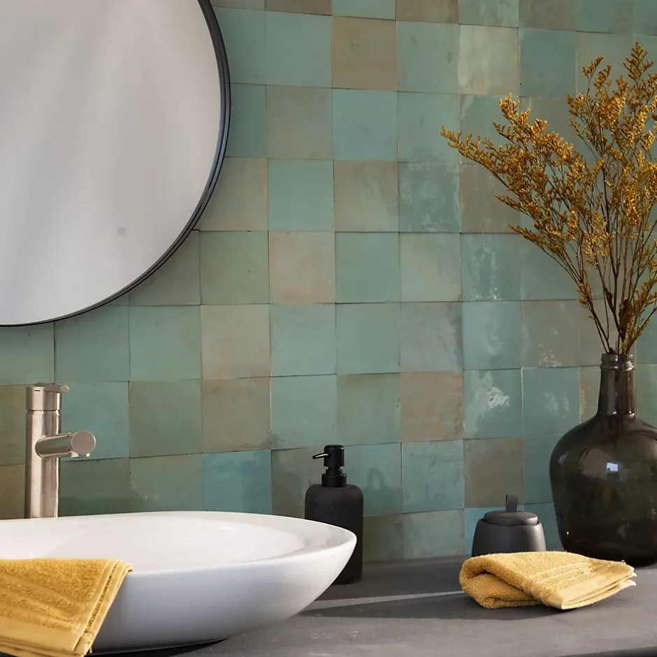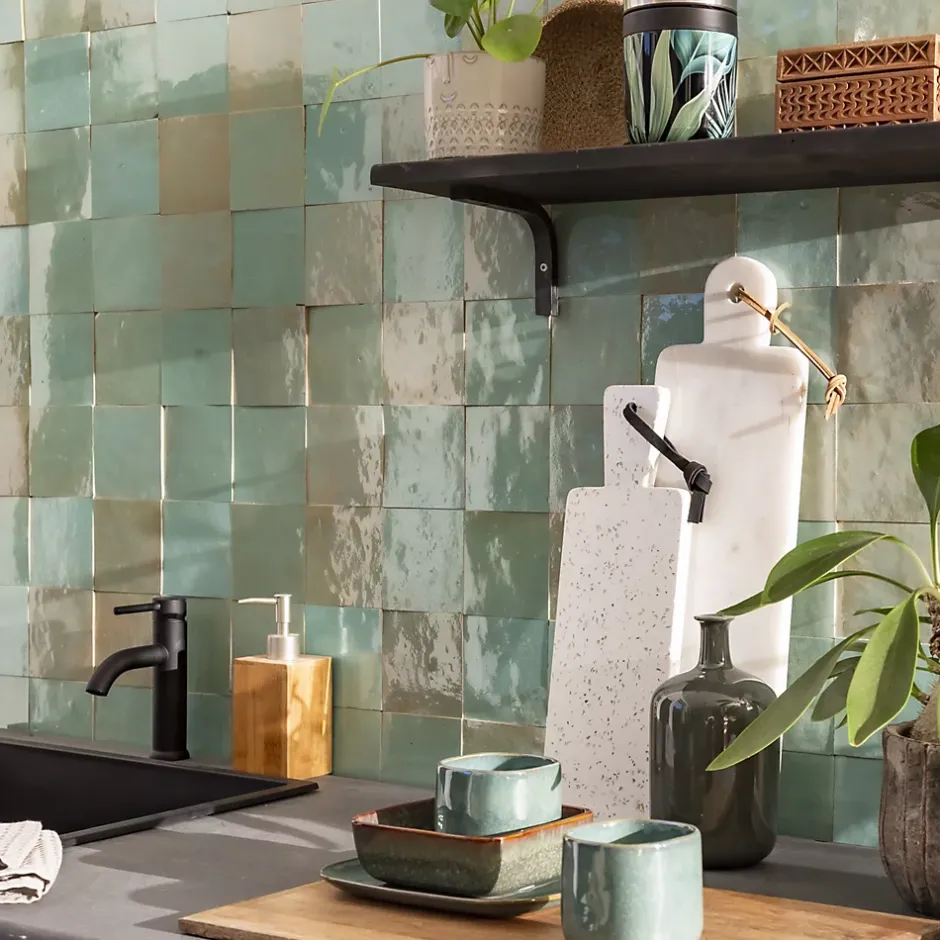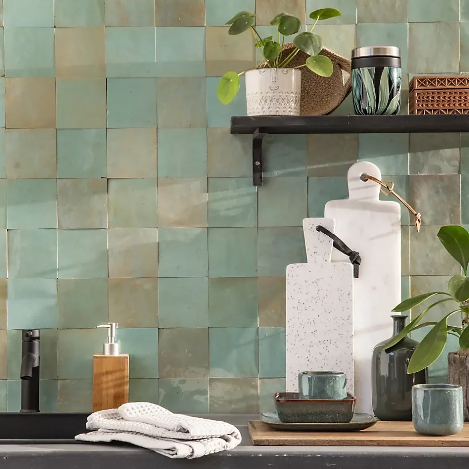 – DESCRIPTION -Ce Carrelage Zellige Marocain est d’une couleur bleu maldives qui s’intégrera à la perfection dans vos aménagements de cuisine ou de salle de bains.Matière : Terre cuite émailléeCouleur : Bleu MaldivesFormat : 10×10 cmEpaisseur : 0,9 à 1,2 cm Finition : Taillé mainOrigine : MarocUtilisation : Intérieur (Sol et Mur) Conditionnement : vendu par lots de 0,5 m² soit 50 carreaux de 10×10 cm. – INFORMATIONS -> Du fait de sa fabrication manuelle et artisanale, le zellige est par essence un revêtement imparfait. Les authentiques carreaux de zelliges marocains sont moulés, taillés et émaillés exclusivement à la main selon des méthodes traditionnelles ancestrales. Ces carreaux sont caractérisés par leurs irrégularités et leurs imperfections.Ces particularités purement esthétiques n’altèrent en rien les caractéristiques techniques des produits.En voici une liste non exhaustive :- Eclats sur l’émail ou dans les coins,- Bosses et irrégularités de planéité,- Creux ou trous pouvant laisser apparaitre l’argile,- Craquelures sur la surface de l’émail,- Révélation de l’argile à travers l’émail,- Variations de couleurs, de nuances et de tons,- Variations d’épaisseurs et de dimensions,- Sur trame : irrégularités d’espacements entre les pièces.> Si vous souhaitez un carrelage parfait : alors n’achetez pas de zellige authentique mais reportez vous sur de la céramique industrielle imitation zellige.> Nos photos sont réalisées par des professionnels avec l’objectif de représenter les produits de la façon la plus fidèle possible. Cependant, en fonction de votre écran et des paramètres appliqués, l’aspect et les couleurs du produit sur votre écran peuvent légèrement différer du produit original.- LIVRAISON -Forfait frais de port : tarif unique, sans limite de quantité.