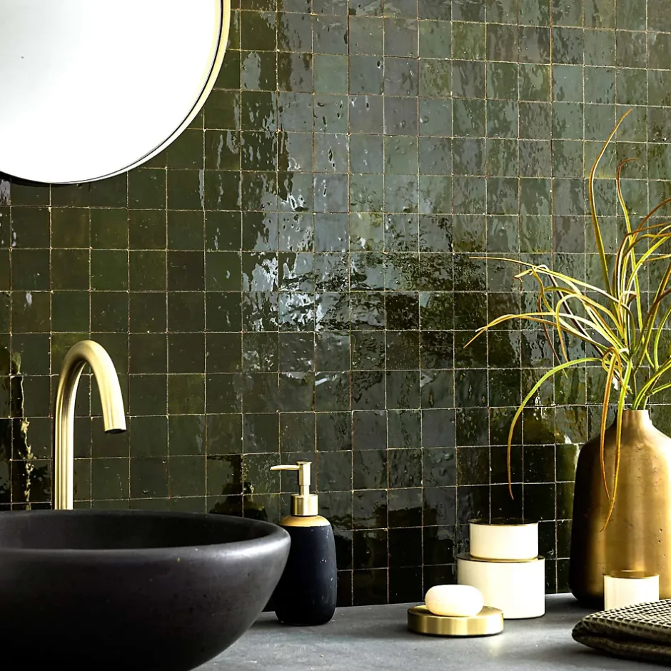 – DESCRIPTION -Cette mosaïque de Carrelage Zellige Marocain s’intégrera à la perfection dans vos aménagements de cuisine ou de salle de bains.Matière : Terre cuite émailléeCouleur : Vert EmpireFormat des carreaux : 5×5 cm Format de la plaque : 30×30 cm Epaisseur : 1 cm Finition : Taillé mainOrigine : MarocUtilisation : Intérieur (Mur) Conditionnement : plaques de 30×30 cm soit 0,09 m²- INFORMATIONS -> Du fait de sa fabrication manuelle et artisanale, le zellige est par essence un revêtement imparfait. Les authentiques carreaux de zelliges marocains sont moulés, taillés et émaillés exclusivement à la main selon des méthodes traditionnelles ancestrales. Ces carreaux sont caractérisés par leurs irrégularités et leurs imperfections.Ces particularités purement esthétiques n’altèrent en rien les caractéristiques techniques des produits.En voici une liste non exhaustive :- Eclats sur l’émail ou dans les coins,- Bosses et irrégularités de planéité,- Creux ou trous pouvant laisser apparaitre l’argile,- Craquelures sur la surface de l’émail,- Révélation de l’argile à travers l’émail,- Variations de couleurs, de nuances et de tons,- Variations d’épaisseurs et de dimensions,- Sur trame : irrégularités d’espacements entre les pièces.> Si vous souhaitez un carrelage parfait : alors n’achetez pas de zellige authentique mais reportez vous sur de la céramique industrielle imitation zellige.> Nos photos sont réalisées par des professionnels avec l’objectif de représenter les produits de la façon la plus fidèle possible. Cependant, en fonction de votre écran et des paramètres appliqués, l’aspect et les couleurs du produit sur votre écran peuvent légèrement différer du produit original.- LIVRAISON -Forfait frais de port : tarif unique, sans limite de quantité. Ava