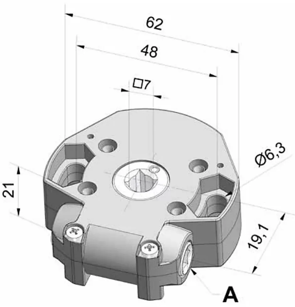 Treuil basse charge à vis sans fin réduction 5,5:1 Ce treuil est spécialement conçu pour des stores droits et verticaux Entrée A (voir schéma ci-contre) : 6 pans 7 mmSans fin de course Informations techniques :Carter en zamacVis sans fin en aluminiumRoue hélicoïdale en laitonAuto-freinage avec paliers Rendement : 0,30Couple de manoeuvre : 2,2 Nm