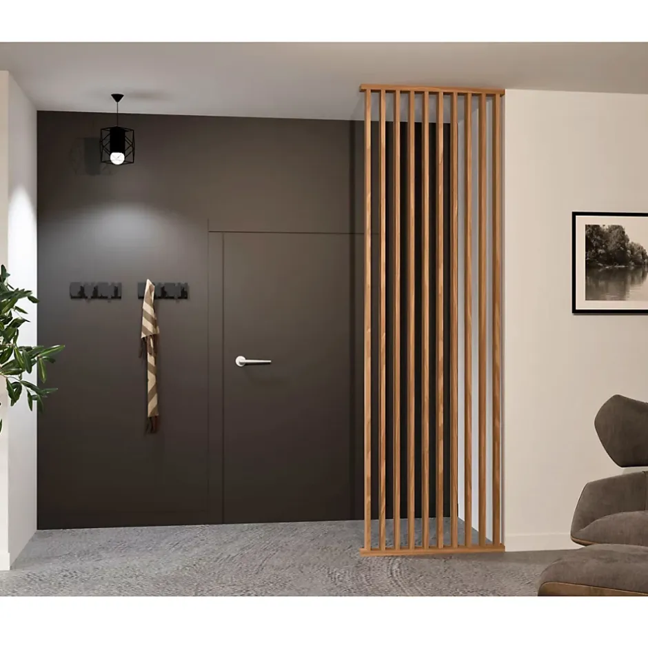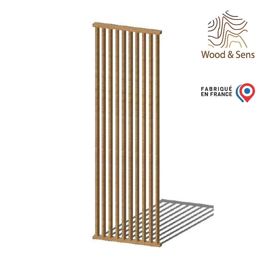 Claustra amovible droit en chêne, H. 254 cm, l. 80 cm, P. 7,5 cm Alliez design et fonctionnalité avec notre claustra droit en chêne, une solution moderne et élégante pour structurer vos espaces intérieurs tout en conservant une sensation d’ouverture et de luminosité. Fabriqué en France, ce claustra bénéficie d’un savoir-faire authentique et de matériaux de haute qualité pour un rendu esthétique et durable.Caractéristiques techniques – Dimensions : Hauteur 254 cm x Largeur 80 cm x Profondeur 7,5 cm- Poids : 28,6 kg- Nombre de lames : 12 lames en chêne massif (10 montants verticaux + 2 traverses horizontales)- Espacement entre les lames : 6 cm- Épaisseur des lames : 2 cm (vue face), 7 cm (vue côté)- Pièces fournies dans le kit : 40 tourillons, 20 vis