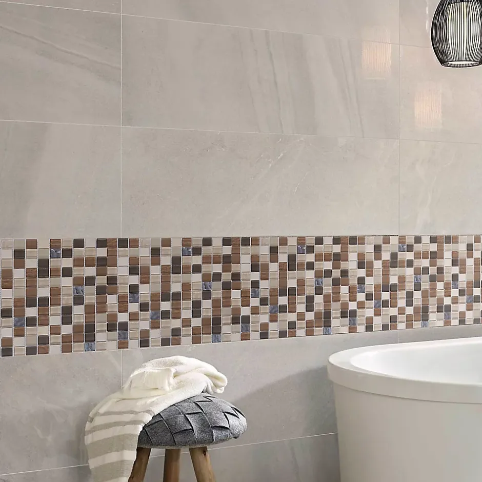 - élément de déco à part entière, ce produit peut s’accorder à un large éventail de carrelages muraux ; il peut être posé par dalles entières ou coupé pour créer des bordures décoratives
