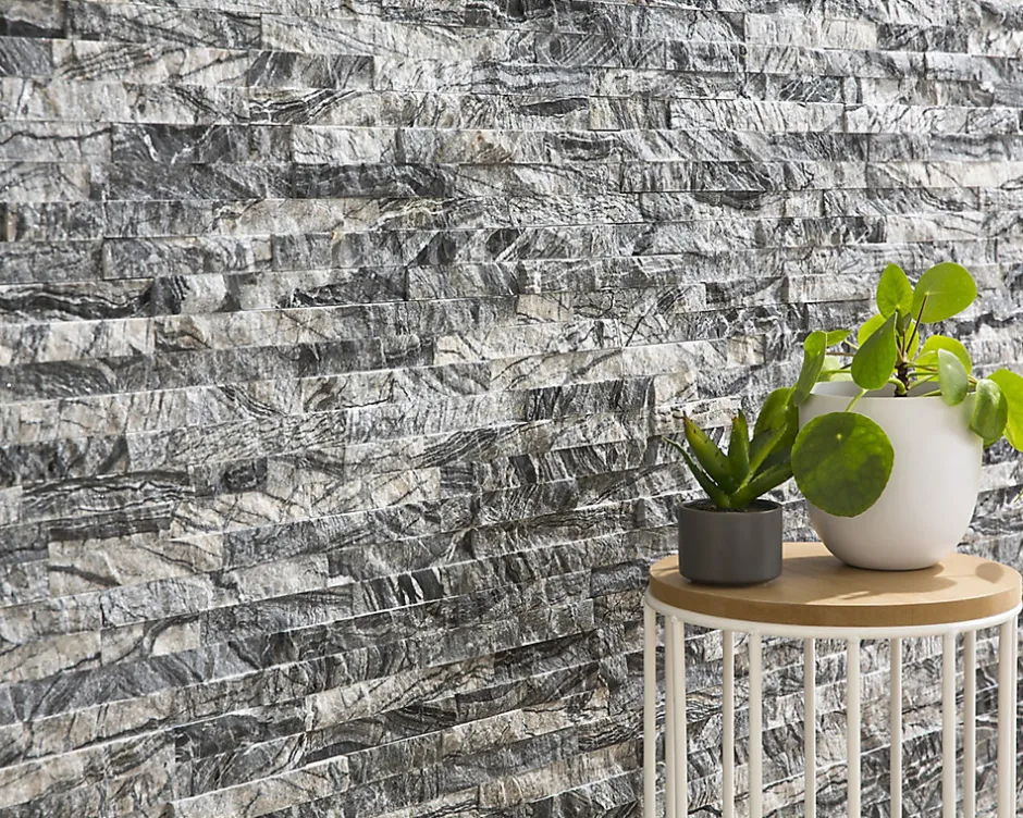 Cette plaquette de parement forme Z en pierre naturelle métamorphosera votre décoration intérieure ou votre façade extérieure. Jouez avec les effets de nuances de noir pour créer une atmosphère design et moderne, dans l’esprit loft. Sa pose collée, sans joint, vous garantit des finitions impeccables