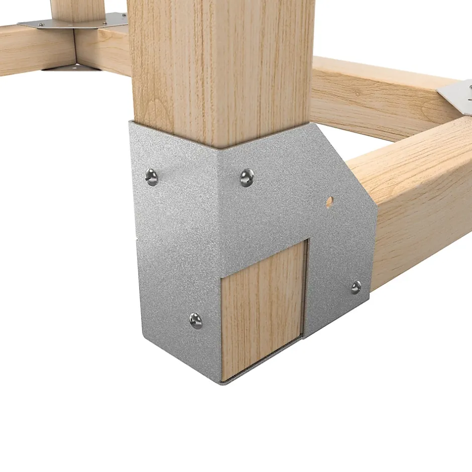 - Simplicité d’utilisation : pliez simplement les connecteurs à la main, insérez l’élément en bois et vissez dans les trous pré-percés.