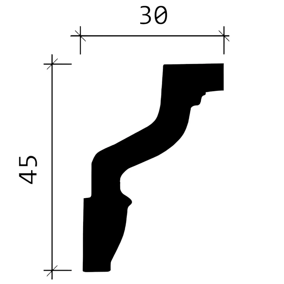- Corniche, dimensions: 200 cm x 3 cm x 4,5 cm. La surface est prétraité