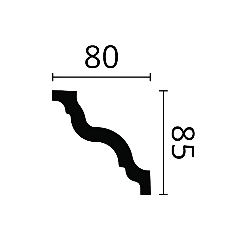 - Corniche, dimensions: 200 cm x 8 cm x 8,5 cm. La surface est non prétraité