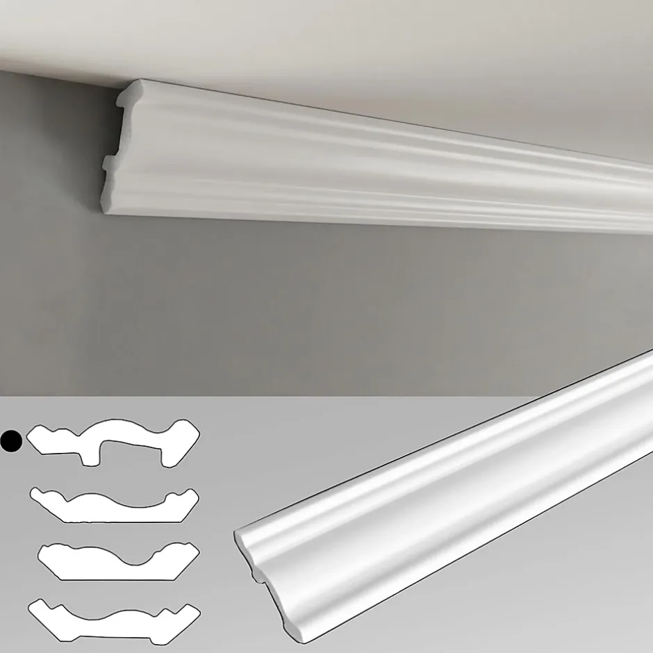 Materiau PS de haute qualite : Fabriquees en materiau PS robuste et resistant aux chocs, les moulures sont durables, stables, impermeables et peuvent etre peintes. Ideales pour la decoration des murs et des plafonds dans les pieces de vie, couloirs, chambres ou bureaux.Dimensions precises et bords nets : Chaque moulure mesure 100 cm de long (+/- 2 %), avec des bords de profil bien definis pour des raccords parfaits. Disponibles en quatre designs elegants – du classique au moderne – pour une decoration personnalisee.Montage facile sans percer : Les moulures se collent simplement avec un adhesif de montage – sans vis ni clous. Parfait pour les bricoleurs – rapide, propre et durablement esthetique.Decoupables et adaptables : Les moulures en PS se decoupent facilement avec une scie a onglets ou une petite scie manuelle. Pour les angles – interieurs ou exterieurs – une coupe a 45 degres est recommandee pour des raccords parfaits.Faciles a entretenir et durables : Grace a leur surface impermeable, ces moulures conviennent egalement pour les cuisines et salles de bain. Le materiau est stable en couleur, resistant a la temperature et facile a nettoyer – ideal pour une decoration durable et impeccable.