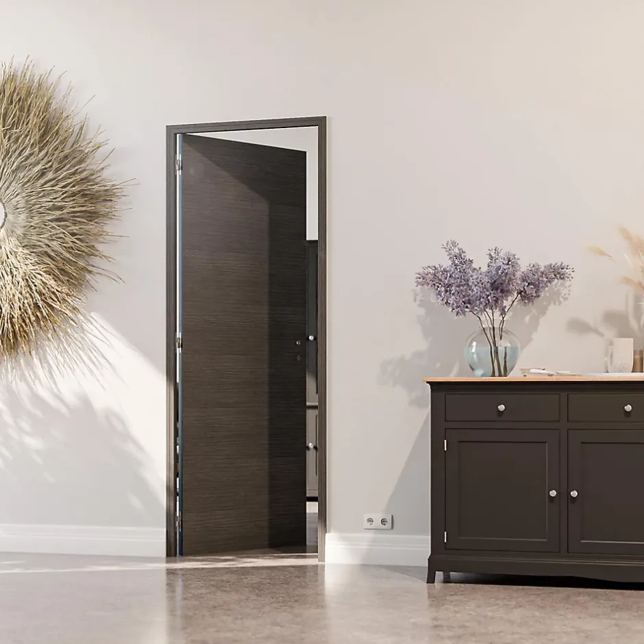 Les caractéristiques du bloc-porte “à la française” Avec son décor imprimé Costa Rica, ce bloc-porte intérieur 73 cm de largeur et 40 mm d’épaisseur peut être posé en début ou en fin de chantier. En matière d’esthétique, il fait son petit effet et se fond harmonieusement à la décoration de votre maison ou appartement. Pratique, ce bloc-porte Costa Rica 73 cm possède des huisseries hydrofuges et extensibles, permettant de s’adapter sur des cloisons de 50 à 72 mm. Cela simplifie la pose dans la réservation, en neuf ou rénovation. Le bloc-porte est aussi équipé d’une serrure magnétique silencieuse à clé (poignée non fournie). La structure alvéolaire nid d’abeille haute densité offre une meilleure rigidité à la porte. Poussant droit ou gauche Poignée non fournie Un bloc-porte solide, durable et esthétique Le bloc-porte Costa Rica combine qualité, résistance et esthétique. Le décor Costa Rica offre un look moderne et sophistiqué, il s’adapte à tous les intérieurs. Pour ce qui est des ferrures, il compte 3 paumelles aspect inox brossé. L’ensemble offre un résultat décoratif et contemporain. Grâce à sa certification PEFC (Programme de reconnaissance des certifications forestières), vous avez la garantie que le bois de votre porte est issu de forêts gérées durablement. Revêtement mélaminé décor Certification PEFC Un bloc-porte simple d’installation Facile à poser, le bloc-porte Costa Rica arrive chez vous avec une notice de pose détaillée. Celle-ci vous explique toutes les étapes à suivre pour une installation sans difficultés. Toutefois, si vous avez besoin d’un coup de main, vous pouvez vous appuyer sur notre service client. Pose début ou fin de chantier Pour le neuf et la rénovation