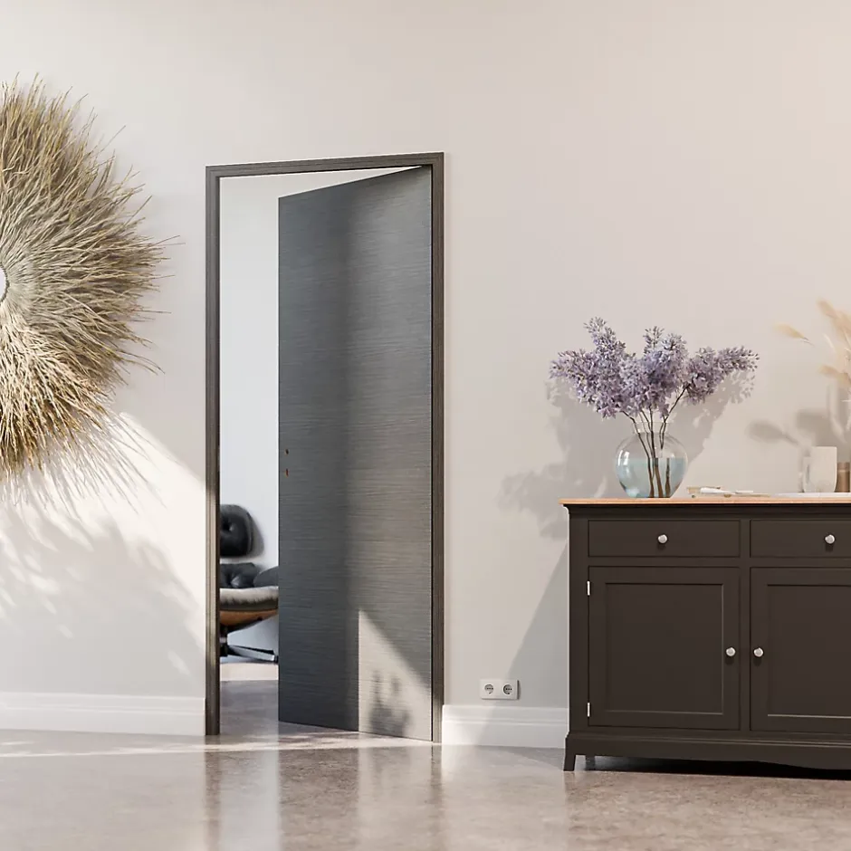 Les caractéristiques du bloc-porte “à la française” Avec son décor imprimé Costa Rica, ce bloc-porte intérieur 83 cm de largeur et 40 mm d’épaisseur peut être posé en début ou en fin de chantier. En matière d’esthétique, il fait son petit effet et se fond harmonieusement à la décoration de votre maison ou appartement. Pratique, ce bloc-porte Costa Rica 83 cm possède des huisseries hydrofuges et extensibles, permettant de s’adapter sur des cloisons de 50 à 72 mm. Cela simplifie la pose dans la réservation, en neuf ou rénovation. Le bloc-porte est aussi équipé d’une serrure magnétique silencieuse à clé (poignée non fournie). La structure alvéolaire nid d’abeille haute densité offre une meilleure rigidité à la porte. Poussant droit Poignée non fournie Un bloc-porte solide, durable et esthétique Le bloc-porte Costa Rica combine qualité, résistance et esthétique. Le décor Costa Rica offre un look moderne et sophistiqué, il s’adapte à tous les intérieurs. Pour ce qui est des ferrures, il compte 3 paumelles aspect inox brossé. L’ensemble offre un résultat décoratif et contemporain. Grâce à sa certification PEFC (Programme de reconnaissance des certifications forestières), vous avez la garantie que le bois de votre porte est issu de forêts gérées durablement. Revêtement mélaminé décor Certification PEFC Un bloc-porte simple d’installation Facile à poser, le bloc-porte Costa Rica arrive chez vous avec une notice de pose détaillée. Celle-ci vous explique toutes les étapes à suivre pour une installation sans difficultés. Toutefois, si vous avez besoin d’un coup de main, vous pouvez vous appuyer sur notre service client. Pose début ou fin de chantier Pour le neuf et la rénovation