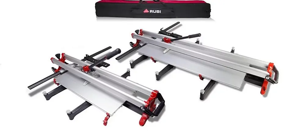 – Coupeuses manuelles TZ – Excellente performance de l’ensemble séparateur : Coupe nette et mouvement délicat- Comprend des molettes de Ø 8 et 18 mm et un sac en tissu renforcé pour le transport et la protection- Equerre avec pivotement central pour une mesure précise et rapide des coupes en diagonales- Butée latérale réglable pour la réalisation de coupes répétitives- Supplément base pour un excellent soutien de la céramique- Facile à transporter : roues en caoutchouc avec roulements et anse- Molettes adaptables interchangeables de Ø 8 à 22 mm : voir versions- Permet de couper des carreaux de grandes dimensions- Puissance du séparateur de 1500 Kg- Chariot ergonomique inclus- Permet la coupe répétitive grâce à la butée – Châssis robuste – Guides et système de freinage- Grande précision de coupe- Robuste – Grâce au design breveté du système de guidage de la tête, le coupe-carreaux manuel TZ offre un traçage léger et précis, même si la charge de pression augmente lors du traçage- La géométrie des guides, en aluminium extrudé, garantit un comportement optimal du charriot et réduit les efforts qui peuvent être générés pendant la coupe- Grande capacité de coupe, jusqu’à 21 mm d’épaisseur. Idéale pour les grands formats – Structure robuste et pliable, pour une résistance supérieure et un transport plus pratique- Facile à transporter : roues en caoutchouc avec roulements et anse Dimensions et Poids :- Longueur de coupe : 102