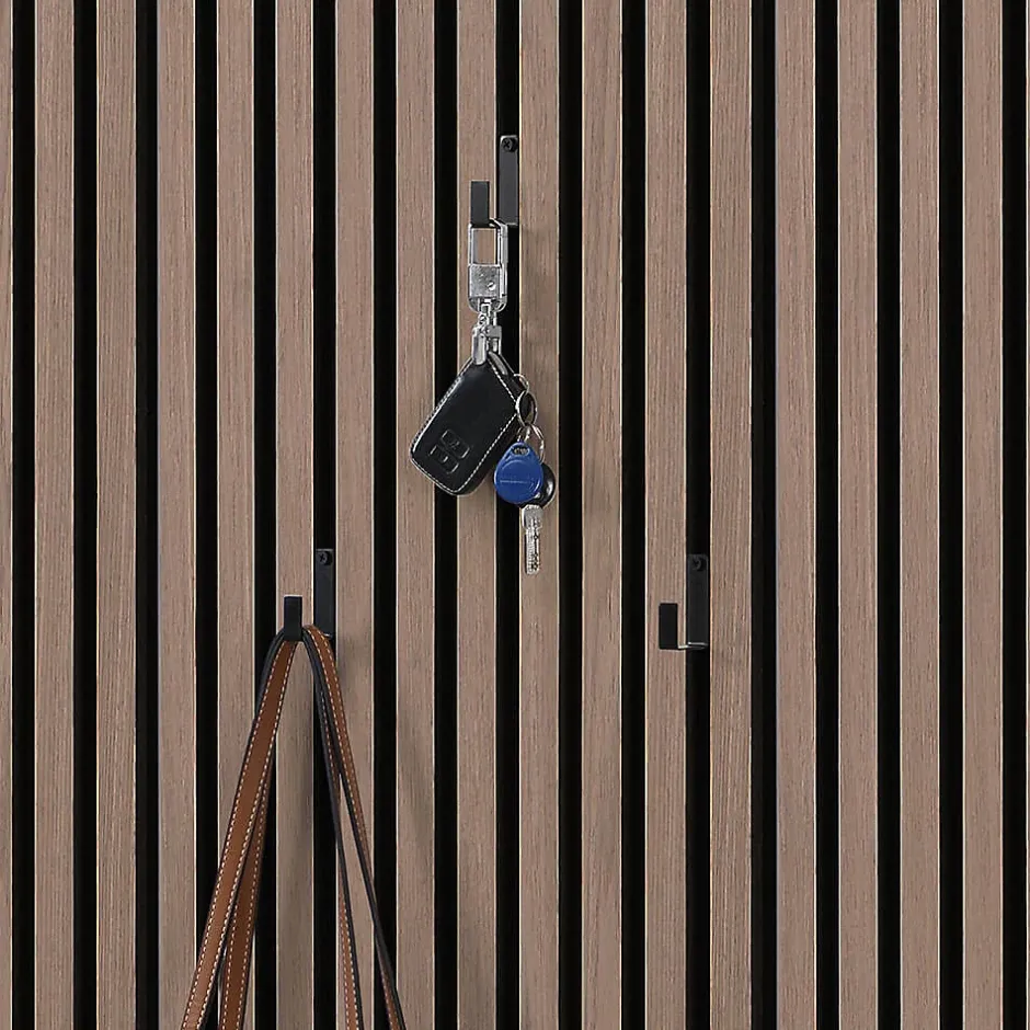 Dimensions (L x l x H) : 3 x 1,2 x 2,5-5,0 cm,Set pratique de 6 piècesMatériau en acier revêtu par poudreParfaitement adapté à nos panneaux acoustiques SONICCrochets à vêtements pour panneaux muraux RASTO – Solution de rangement pratique et éléganteAvec le set de patères RASTO, tu obtiens une solution astucieuse et peu encombrante pour organiser tes murs avec style. Ce set pratique de 6 pièces en acier inoxydable de haute qualité est compatible avec nos panneaux acoustiques SONIC et s’intègre harmonieusement dans toute décoration murale. Les crochets offrent une possibilité de suspension fiable pour les vêtements, les sacs et les accessoires. Grâce aux vis fournies, l’installation est simple et se fait en un clin d’œil. Grâce à leur construction robuste, les crochets sont particulièrement stables et durables – idéaux pour une utilisation quotidienne. Avec ces crochets à vêtements, tu obtiens non seulement une fonctionnalité, mais aussi un design moderne qui donne la touche finale à ton espace.Opte pour le set de patères RASTO et donne du style à tes murs ! Détails du produit:Trois crochets à vêtements, vis inclusesFacile à installerQualité robusteComplément parfait pour toute décoration murale Données techniques:Dimensions (L x l x H) : 3 x 1,2 x 2,5-5,0 cmMatériau : acier (revêtu par poudre)Couleur : noirCouleur des vis : noirCapacité de charge : 10 kgPoids : 33 g par crochet