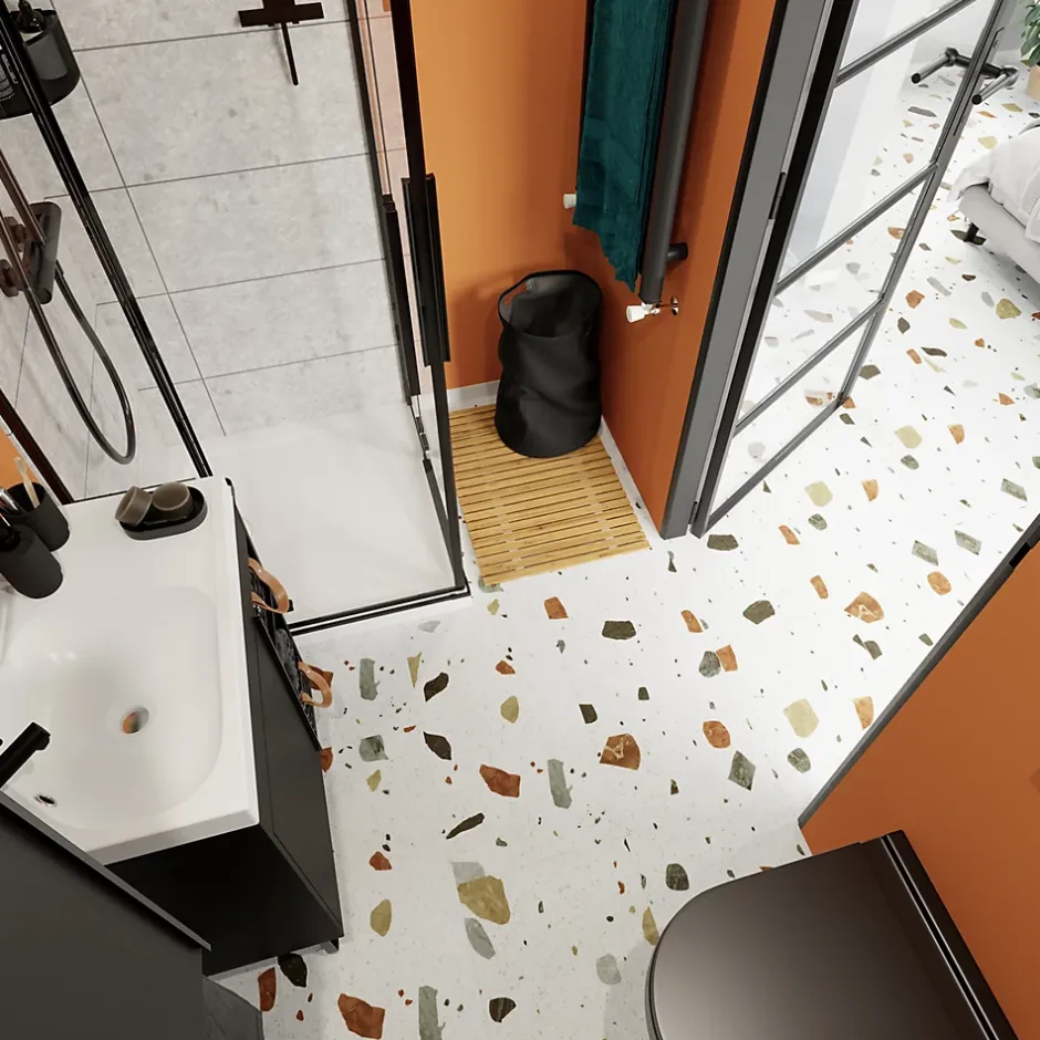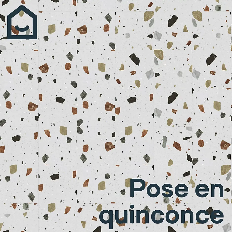 - La surface texturée imite l’aspect et le toucher d’une véritable mosaïque Terrazzo.