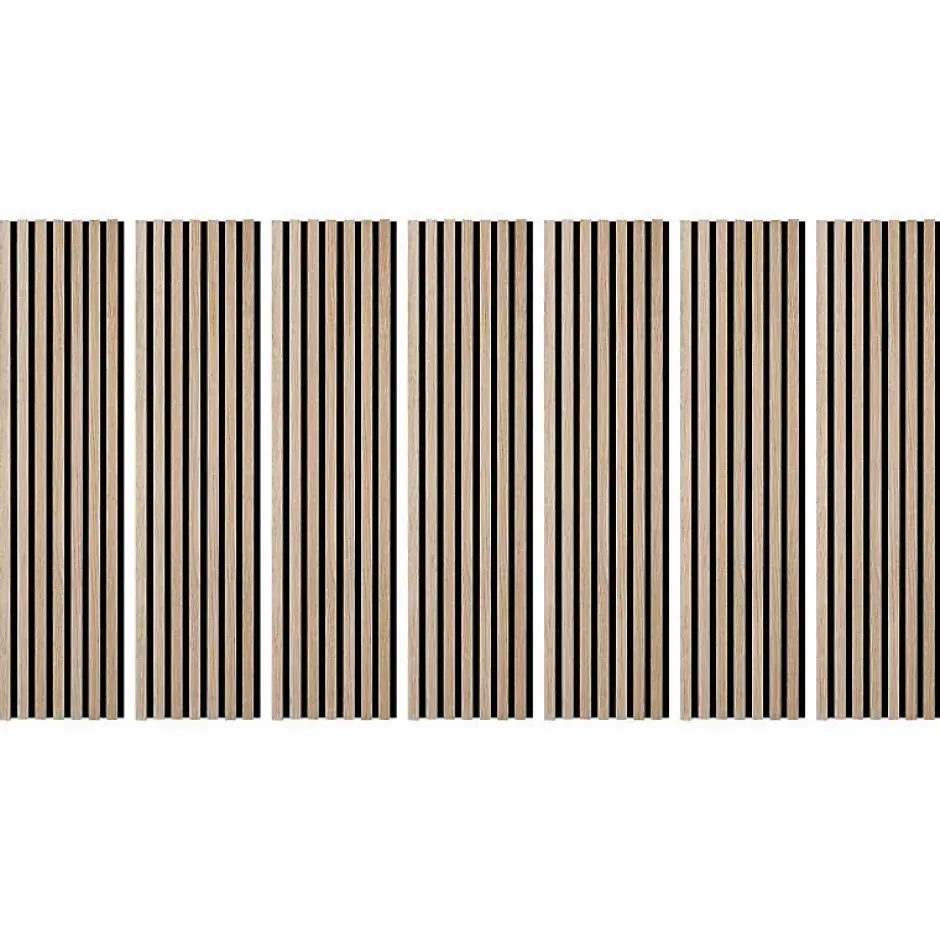 Tête de lit tasseau pour lit 160 cmCe pack tête de lit 160 tasseaux verticaux a été spécialement conçu pour équiper un lit de largeur 160 cm. Il est composé de 7 panneaux tasseaux bois de hauteur 120 cm pour une largeur totale de 210 cm. Ce qui laisse un débordement de 25 cm de part et d’autre du sommier.Ce pack de panneaux tasseaux conviendra également en tête de lit pour lit 140 ou 180 cm. La largeur du débordement variera en fonction.Présentation du panneau tasseau pour tête de litLe panneau tasseau bois 120 est composé d’une feutrine noire en polyester de 4 mm d’épaisseur sur laquelle sont agrafés des tasseaux en MDF revêtus d’un chaleureux placage en chêne clair. Ces tasseaux chêne de section 27 x 6 mm sont espacés les uns des autres de 16 mm. L’ensemble des 7 panneaux constitue un pack tête de lit de largeur totale de 210 cm.Avantages du pack tête de lit 160 tasseaux verticaux- Avec sa finition chêne naturel contrastant à la feutrine noire, c’est la tendance déco actuelle.- La composition des tasseaux déco vous assure une bonne stabilité dans le temps et un rendu impeccable.- Facile à poser, les panneaux décoratifs se collent directement sur le mur.- En sélectionnant ce pack tete de lit 160, aucune coupe n’est à prévoir.