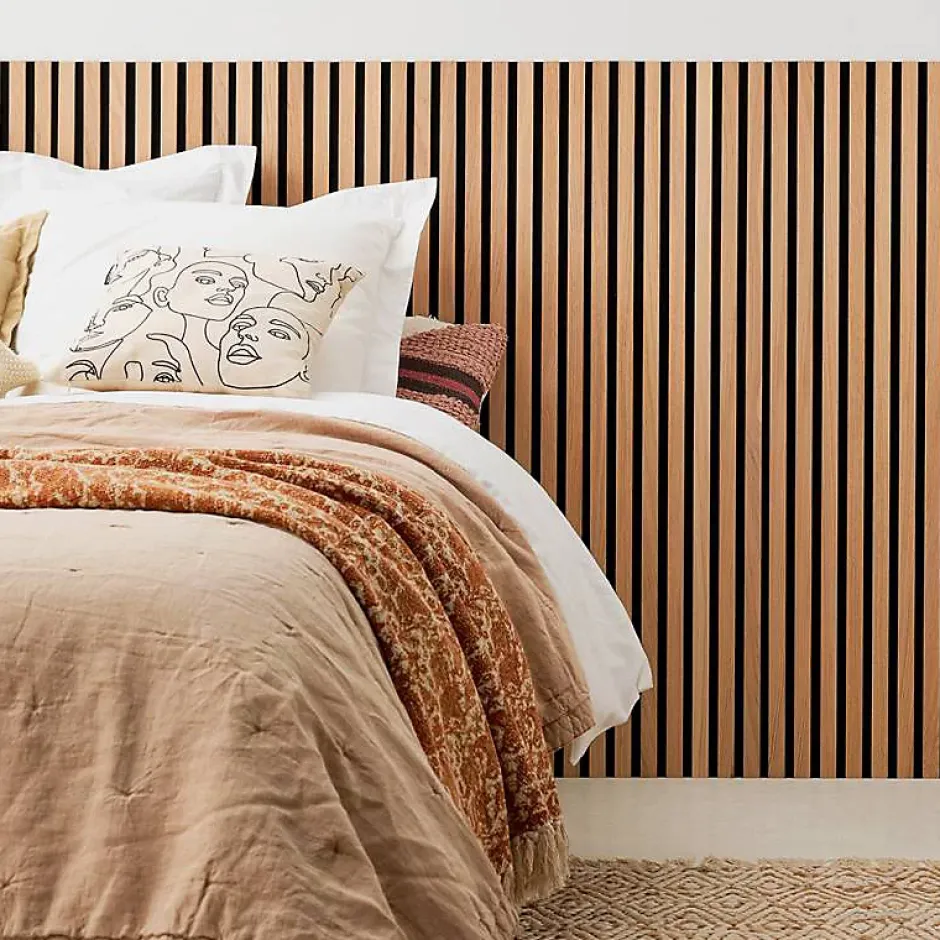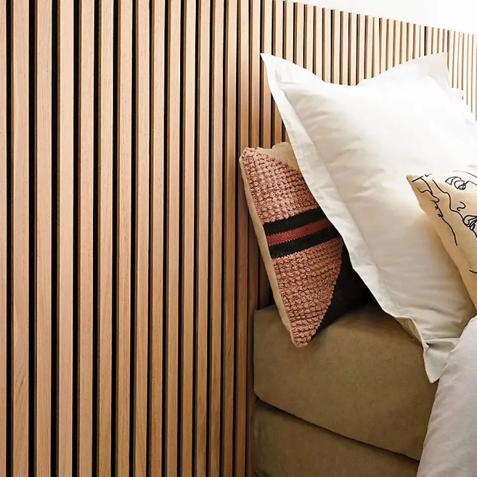 Vous recherchez un produit tendance, moderne et adapté à vos projets de rénovation DIY ? Le panneau de tasseaux de bois de 120cm est fait pour vous ! Nos panneaux sont composés de 7 lamelles de 30cm de long, 6mm d’épaisseur et de 27mm de largeur agrafés sur une feutrine en polyester de 4mm d’épaisseur. Les lamelles sont réalisées à partir d’un bois MDF revêtu d’un placage authentique en chêne naturel, gage de qualité et de rendu amélioré. En tête de lit, à proximité d’un ilot de cuisine ou simplement derrière un bureau, il apporte une touche zen et contemporaine à toutes vos pièces grâce à ses teintes boisées. Un must-have pour vos projets de rénovation !