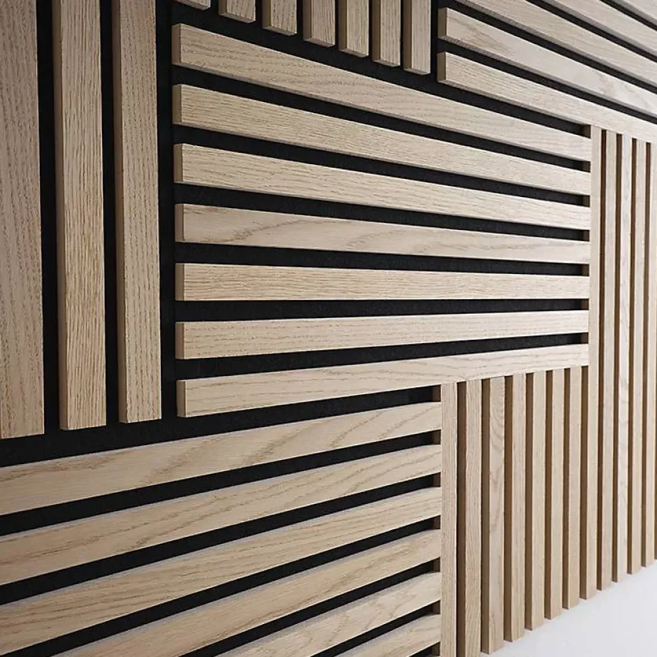 Envie de décorer vos murs avec une nouveauté tendance et moderne ? Découvrez la plaque murale tasseau ! En plus de suivre la tendance du tasseau décoratif, ces dalles petit format réinventent la décoration en jouant avec les motifs ! Idéales comme composition murale, pour décorer un bureau ou votre salon, mais également en tant que solution acoustique ! La facilité de pose ravira les débutants en bricolage.Présentation de la dalle murale en tasseaux de boisCette plaque de format rectangle 60 x 30 cm est épaisse de 1,9 cm. La feutrine en polyester noir accueille des tasseaux de bois solidement agrafés. Ces lattes sont fabriquées en MDF revêtu d’un placage en chêne clair véritable. De section 27 x 11 mm, chaque tasseau est séparé du suivant par un espacement de 16 mm révélant la structure 3D du panneau.Nous proposons ce revêtement décoratif en tasseaux de bois est proposé en format rectangle 60 x 30, en format carré 30 x 30 cm et en panneau 250 x 30 cm.Avantages des plaques en tasseaux de bois- De dimension 60 x 30 cm, ces dalles sont faciles à poser.- A la verticale comme à l’horizontale, laissez libre cours à votre créativité en imaginant des motifs. Elle se combine d’ailleurs parfaitement avec le format 30 x 30 cm.- En plus d’être décoratif, ce panneau peut également contribuer à l’amélioration de l’acoustique de la pièce en limitant la réverbération du son.- Avec son épaisseur de 19 mm, ces plaques apportent de la structure et du caractère à votre décoration intérieure.
