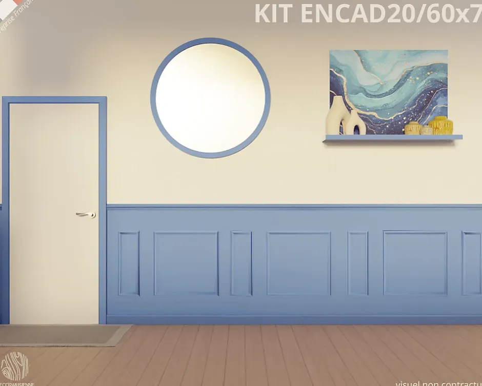 ÉLÉGANT & PRÊT À POSERApportez le charme authentique du style Haussmannien à votre intérieur grâce à ce kit complet d’encadrement composé de moulures, cimaises et plinthes décoratives.Conçu pour offrir un rendu raffiné et harmonieux, ce kit intègre des éléments en finition brute, prêts à être personnalisés selon vos envies. Idéal pour structurer un mur, encadrer une zone décorative ou réaliser un ensemble architectural élégant, il apporte immédiatement caractère et sophistication à votre pièce.FACILE À INSTALLER & PRÉDÉCOUPÉCe kit a été pensé pour simplifier la pose, même pour les utilisateurs débutants.Les moulures sont prédécoupées et disposent de découpes à 45° pour un assemblage précis et rapide. Prêt à l’emploi, l’ensemble ne nécessite que l’encollage et la mise en peinture pour s’adapter parfaitement à votre décoration intérieure. Vous pouvez ainsi créer un cadre mural impeccable en un minimum d’efforts.KIT COMPLETCe kit inclus : 2 cimaises de 200cm2 plinthes de 200cm8moulures de cadre de 20 cm20 moulures de cadre de 60 cmCARACTÉRISTIQUES TECHNIQUES Style : Haussmannien Finition : Brut (à peindre) Pose : À coller Moulures prédécoupées avec angles à 45° Longueur totale : 400 cm