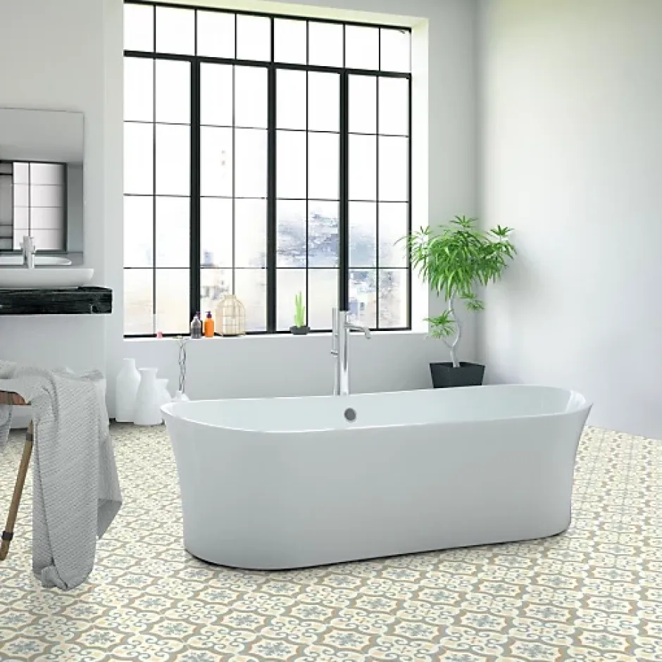 Sol vinyle à la surface mate offrant une protection améliorée contre les taches et les rayures.Son imitation carreaux de ciment bleu et ocre, à la finition mate, donnera du cachet à votre intérieur. Grâce à sa couche d’usure renforcée par un traitement en polyuréthane, ce sol est esthétique et facile à nettoyer, conçu pour offrir une protection contre les taches et les rayures. Idéal pour toutes les pièces : salon, chambre, cuisine, salle de bain, bureau et couloir.Couche d’usure hautes performances contre les salissures et la poussière. Un peu d’eau suffira à les garder propres et hygiéniques pendant toute leur vie, pas besoin de produits agressifs ou d’appareils gourmands en énergie.Nos sols PVC répondent aux exigences les plus strictes en termes de qualité de fabrication, d’hygiène et de sécurité et d’environnement.- CARREAUX : 20 x 20 cm- ASPECT : Mat- CHAUFFAGE PAR LE SOL : Oui- CLASSE COV : A+- CLASSEMENT EUROPÉEN : Usage Domestique – Classe 23 : Trafic intense (chambre, salon, hall d’entrée, salle à manger, couloir, salle de bain, cuisine, pièces avec accès sur l’extérieur), Usage Public et Commercial – Classe 31 : Trafic faible/intermittent (bureau individuel, chambre d’hôtel)- CLASSEMENT FEU : Cfl-s1 (en pose collée, ancienne norme M3)- CONDUCTIVITÉ THERMIQUE : 0,25 W/MK- COUCHE D’USURE : 0,25 mm- ÉPAISSEUR : 2,5 mm- FABRICATION : Européenne- ISOLATION PHONIQUE : 18 dB- POIDS : 1650 g/m²- RÉSISTANCE AU GLISSEMENT : R11- RÉSISTANCE CHIMIQUE : Très bonne- RÉSISTANCE THERMIQUE : 0,00104 m² K/W- TRAITEMENT DE SURFACE : PU• Tolérance sur la largeur et la longueur : ±3%IMPORTANT : Différences possibles de teinte entre rouleaux de largeurs différentes (2m, 3m, 4m). À considérer en cas de raccords. Évitez les tapis ou protections en caoutchouc/latex qui peuvent laisser des taches indélébiles. Privilégiez des protections en feutre pour les pieds de meubles.