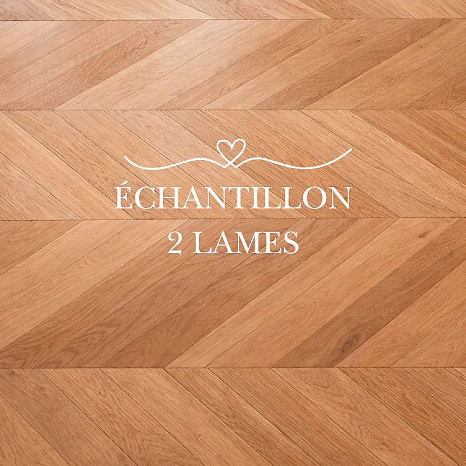 [ECHANTILLON] – 2 lames Ce parquet massif en chêne français, issu de bois noble et durable, séduit par son authenticité et sa qualité haut de gamme. Sa pose en pointe de Hongrie (chevron) apporte un caractère élégant et intemporel, parfaitement adapté aux intérieurs classiques comme contemporains. Les lames de 600 × 120 mm pour 15 mm d’épaisseur sont biseautées et coupées à 45 , garantissant une pose régulière et précise. Le bois massif offre une bonne stabilité dimensionnelle et convient aux pièces de vie, salons et chambres. La finition naturelle révèle une teinte bois clair à blond chaud, avec un veinage apparent et des variations naturelles propres au chêne. La pose collée en plein est recommandée (pose clouée possible selon support). Parquet massif non compatible avec le chauffage au sol. Tolérance de fabrication ?5 %. 1 paquet = 16 lames = 0.864m2 2 lames = 0,108 m ?Caractéristiques et avantages