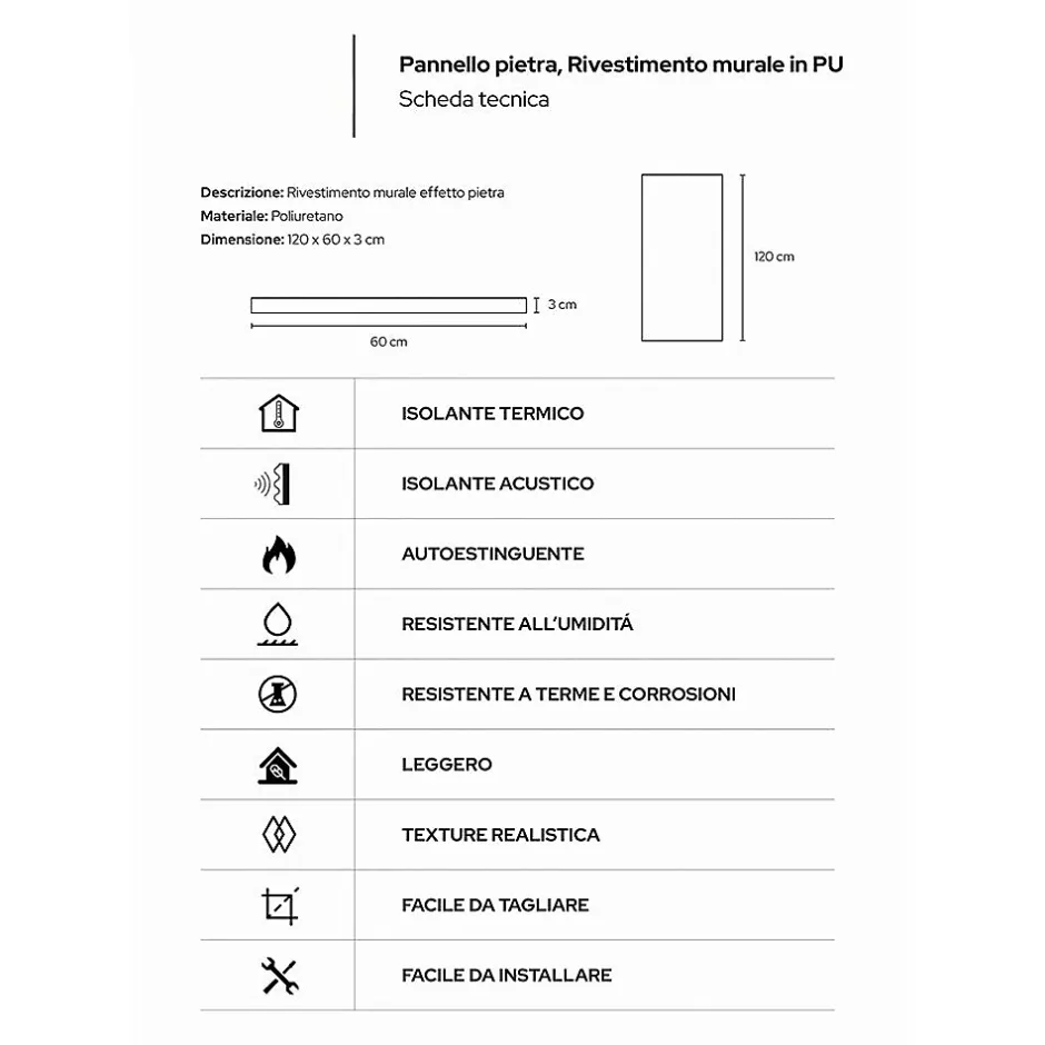 Divina Home Ensemble de 10 panneaux décoratifs effet pierre 3D, revêtement mural PU 7,2 m², 120x60x3 cm, Gris Volcan