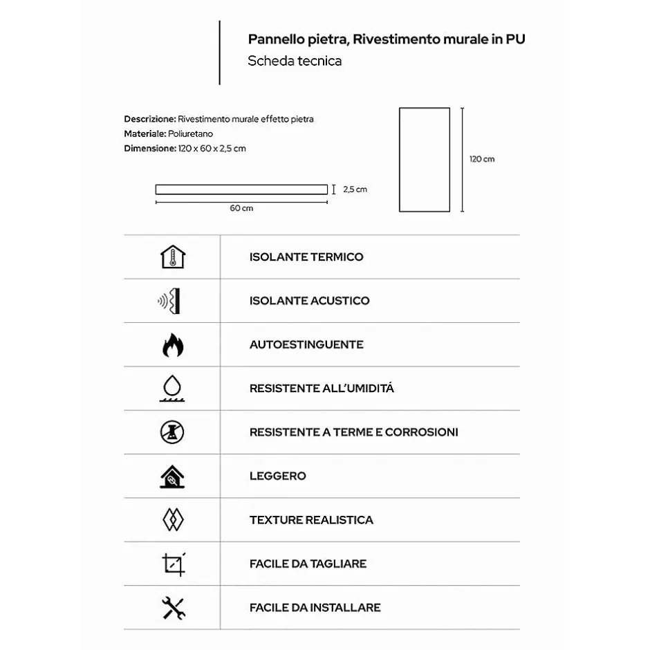 Panneaux muraux en polyuréthane effet pierre 3D DIVINA HOMEHabillez vos murs avec nos nouveaux panneaux en polyuréthane effet pierre 3D.Leur effet pierre ultra-réaliste en fait la solution idéale pour des revêtements muraux intérieurs ou extérieurs élégants, à l’abri des intempéries.Légers, ils s’installent rapidement et sans effort. Que ce soit pour apporter une touche d’élégance à votre salon, votre chambre ou créer un espace créatif dans votre bureau, nos panneaux en polyuréthane sont extrêmement polyvalents et offrent un rendu très réaliste.Leur surface robuste est facile à nettoyer, imperméable et conserve son aspect impeccable pendant de nombreuses années. Parfaits pour tous ceux qui privilégient le design, la qualité et la facilité d’installation