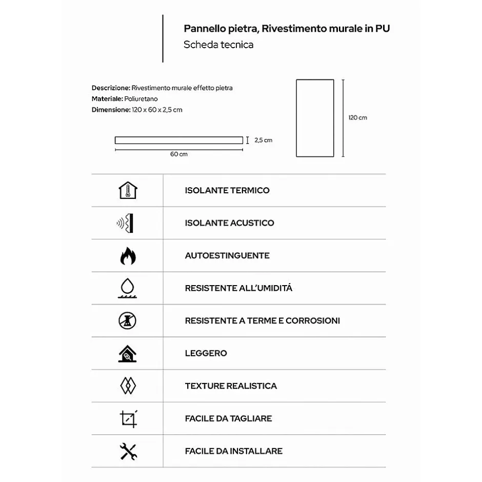 Panneaux muraux en polyuréthane effet pierre 3D DIVINA HOMEHabillez vos murs avec nos nouveaux panneaux en polyuréthane effet pierre 3D.Leur effet pierre ultra-réaliste en fait la solution idéale pour des revêtements muraux intérieurs ou extérieurs élégants, à l’abri des intempéries.Légers, ils s’installent rapidement et sans effort. Que ce soit pour apporter une touche d’élégance à votre salon, votre chambre ou créer un espace créatif dans votre bureau, nos panneaux en polyuréthane sont extrêmement polyvalents et offrent un rendu très réaliste.Leur surface robuste est facile à nettoyer, imperméable et conserve son aspect impeccable pendant de nombreuses années. Parfaits pour tous ceux qui privilégient le design, la qualité et la facilité d’installation