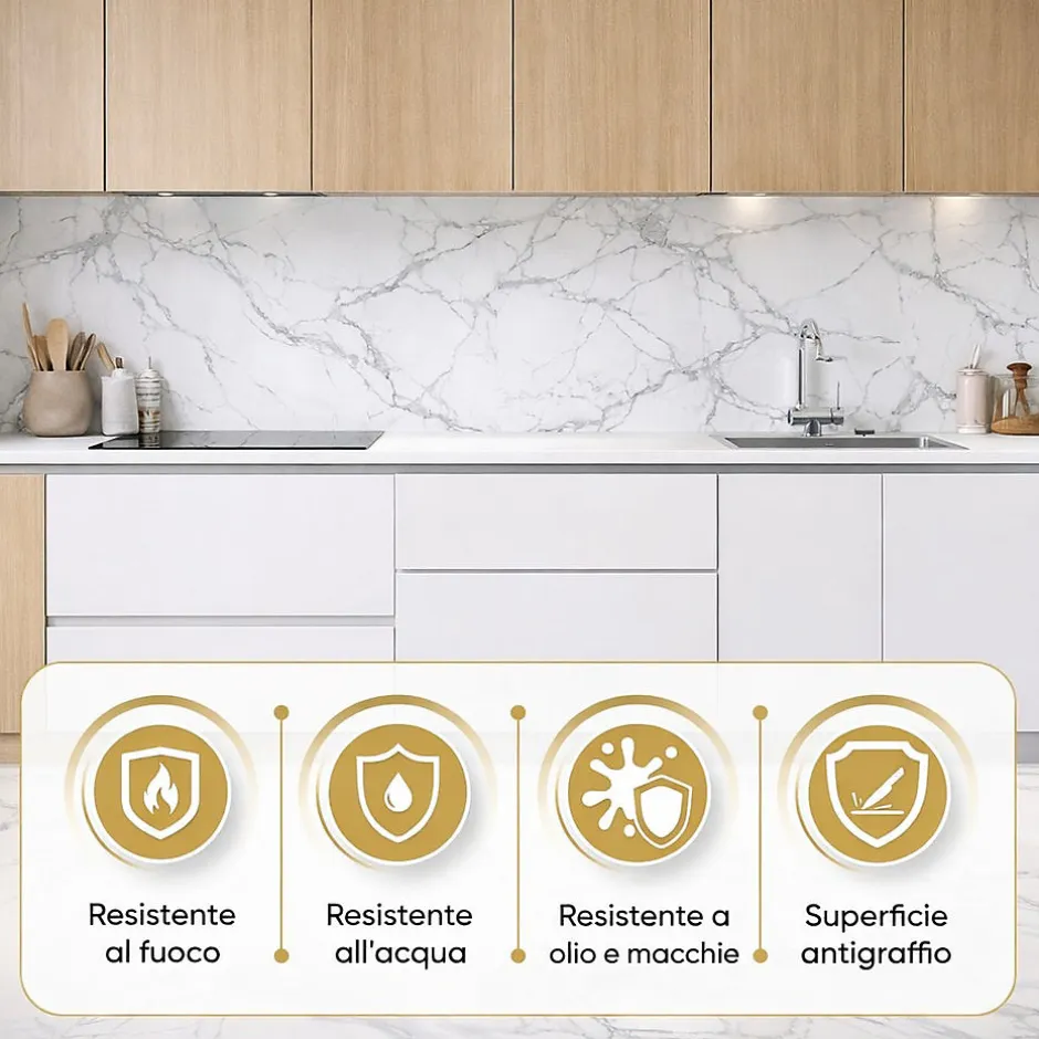 DIVINA HOME Panneaux muraux en PVC UV effet marbreHabillez vos murs avec nos nouveaux panneaux UV effet grès cérame.Leur effet marbre ultra-réaliste en fait la solution idéale pour des revêtements muraux intérieurs élégants.Légers, ils s’installent rapidement et sans effort. Que ce soit pour apporter une touche de raffinement à votre salon, votre chambre ou pour créer un espace créatif dans votre bureau, nos panneaux en polyuréthane sont extrêmement polyvalents et offrent un rendu authentique.Leur surface robuste est facile à nettoyer, imperméable et conserve son aspect impeccable pendant de nombreuses années. Parfaits pour tous ceux qui privilégient le design, la qualité et la facilité d’installation.Caractéristiques :Dimensions : 120x60xh 0,3 cmConditionnement : 6 pièces, surface totale couverte : 4,30 m²Matériau : PVCIdéal pour l’intérieurPropriétés :Résistant à l’humidité, à la chaleur et à la corrosion, ignifugéLéger, texture réaliste, facile à découper et à installerInstallation :Ces dalles peuvent être appliquées directement sur les murs, avec possibilité de découpe au cutter ou à l’aide d’un ruban adhésif flexible.Pour la fixation, utiliser une colle adaptée au type de support
