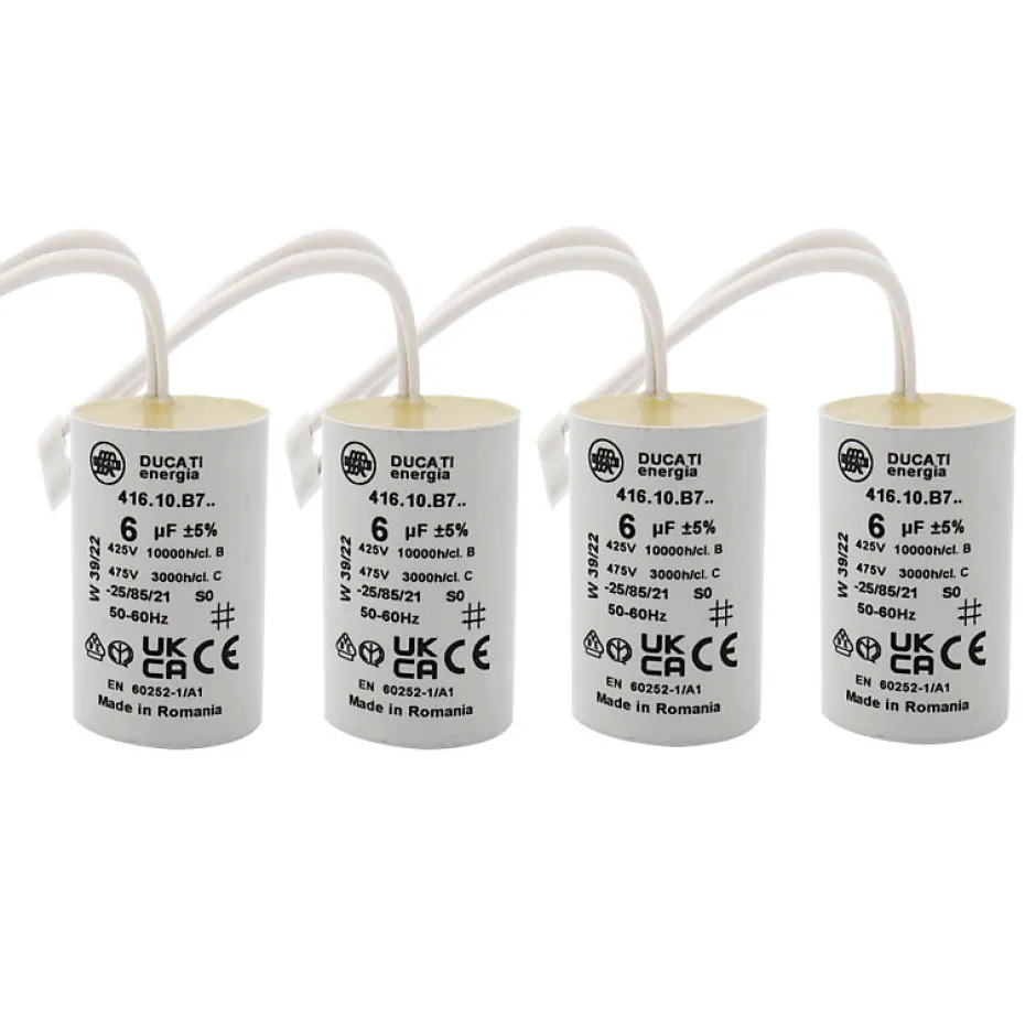 - Capacité de 6 µF pour une performance optimale.Avec une capacité de 6 microfarads (µF), ce composant est essentiel pour assurer un démarrage fluide et un fonctionnement stable de votre moteur, évitant ainsi les ralentissements et pertes de puissance.