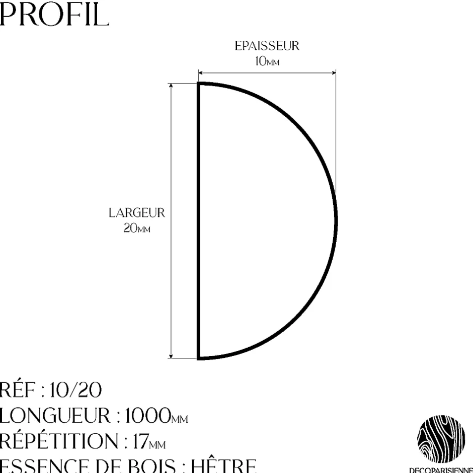DÉCOUVREZ LA QUALITÉ DU BOIS MASSIF Testez notre échantillon de moulure décorative perle en hêtre massif, un bois réputé pour sa solidité et son élégance naturelle. Ce petit format vous permet d’apprécier la finesse du grain, la robustesse du matériau et la finition lisse de nos moulures avant de réaliser votre projet complet. Idéal pour visualiser le rendu final sur votre mur ou comparer vos teintes de peinture. UN APERÇU DU STYLE PARISIEN Inspirée du design parisien, cette moulure perle apporte une touche raffinée et intemporelle à votre intérieur. Grâce à cet échantillon, vous pouvez juger en main de la délicatesse du motif perlé et de son potentiel décoratif pour structurer et sublimer vos espaces. CARACTÉRISTIQUES TECHNIQUES Couleur : Brut (à peindre) Matière : Bois de hêtre massif Type de pose : À encoller Dimensions de l’échantillon : 20 cm (longueur) x Ø 2 cm Format : Échantillon individuel