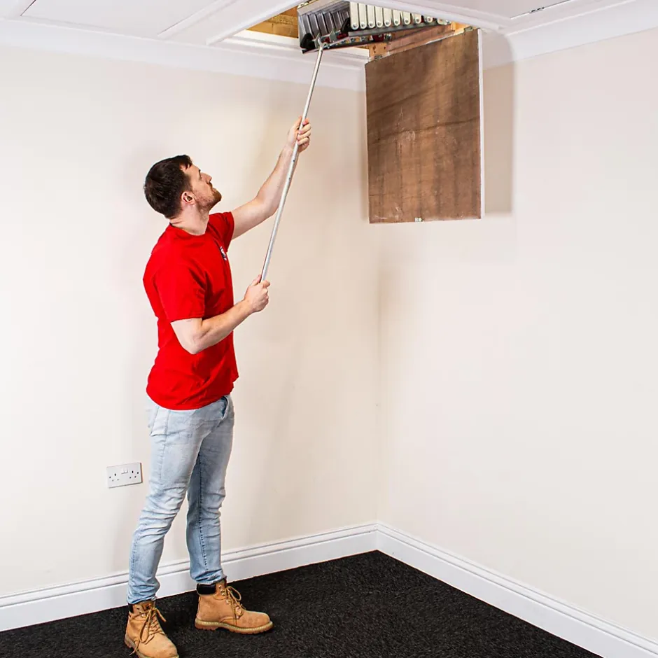 - Idéale pour les petites ouvertures de grenier, car elle nécessite une ouverture minimale de 450 mm de large et 570 mm de long (600 mm pour les modèles 3,35 m et 3,66 m)