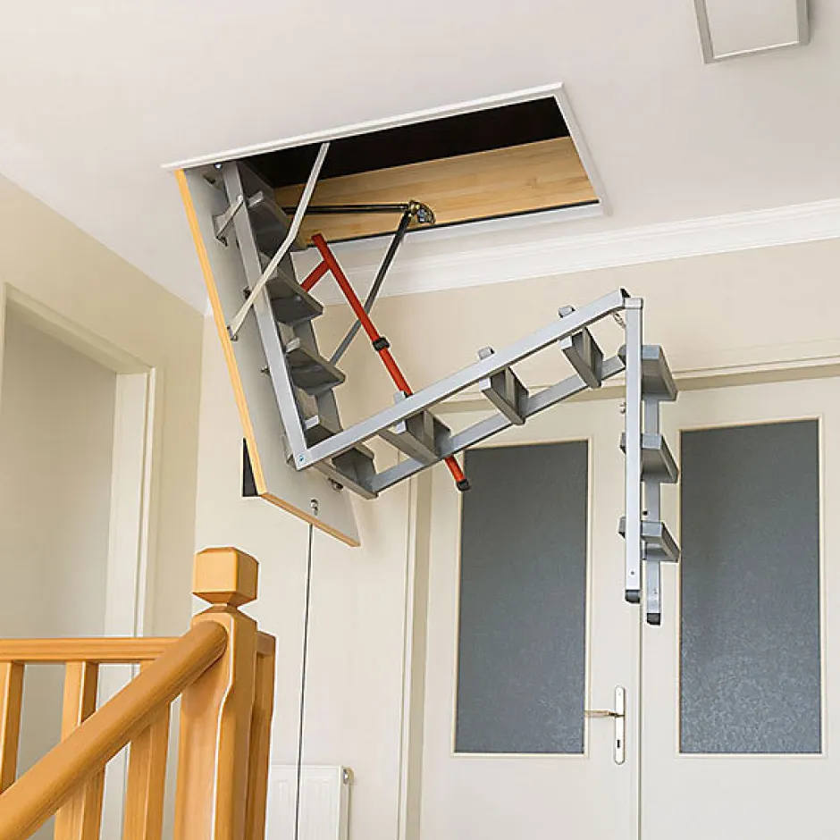 ACCES GRENIER- Echelle escamotable pour accèder aux combles ou grenier de votre logement en toute sécurité.- Agrandir la surface habitable dans une maison individuelle ou appartement en aménageant un espace sous les toits non utilisé ou une mezzanine.- Dans un garage pour accéder à un espace situé en hauteur, agrandir l’espace de stockage.- Créer un accés permanent et sécurisé comparé à une échelle non fixe.- Accés technique aux gaines sous toitures, système de ventilation et climatisation lors de travaux de construction ou rénovation.TRAPPE- Trappe blanche prête à peindre ou décorer avec du papier peint pour s’harmoniser avec votre aménagement intérieur.- Isolation de la trappe qui lutte efficacement contre les déperditions de chaleur : épaisseur de 3.6cm dont 3cm d’isolant (coefficient 1.1 W/m²K) SECURITE ET CONFORT- Main-courante pour assurer une montée et descente sûre et confortable.- Marches en métal antidérapantes d’une profondeur de 130mm.- Mécanisme d’allégement qui facilite l’ouverture et fermeture de l’échelle.- Joint périphérique pour diminuer la perte de chaleur.- Patins de protection pour ne pas abîmer et rayer le parquet ou le carrelage.- Distance réduite entre la dernière marche et le plancher afin d’éviter les risques de chutes.- Manipulation de l’échelle sans risques grâce à la perche de manoeuvre.PIEDS REGLABLES- Pieds réglables sans découpe de l’échelle.- Permet un ajustement de l’échelle afin de s’adapter à la hauteur de votre pièce.GRANDE RESISTANCE- Charge maximale admissible de 200kg.- Permet de transporter des objets lourds dans un espace de stockge.CHOIX DE LA TREMIE- La trémie est l’ouverture dans le plafond qui sert d’accès au grenier- En cas de création, vous pouvez réaliser l’ouverture de votre choix : plus elle sera grande et plus vous pourrez passer avec