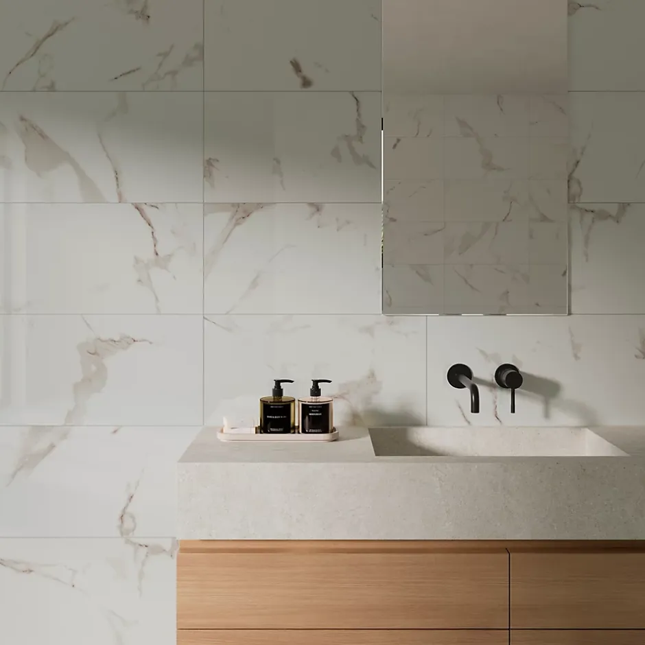 Carrelage sol et mur intérieur en grès effet marbre blanc brillant L.60 x l.30 cm ép.8,5 mm, Ecoceramic Aria