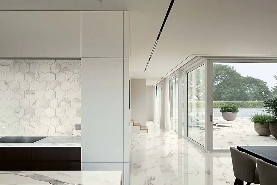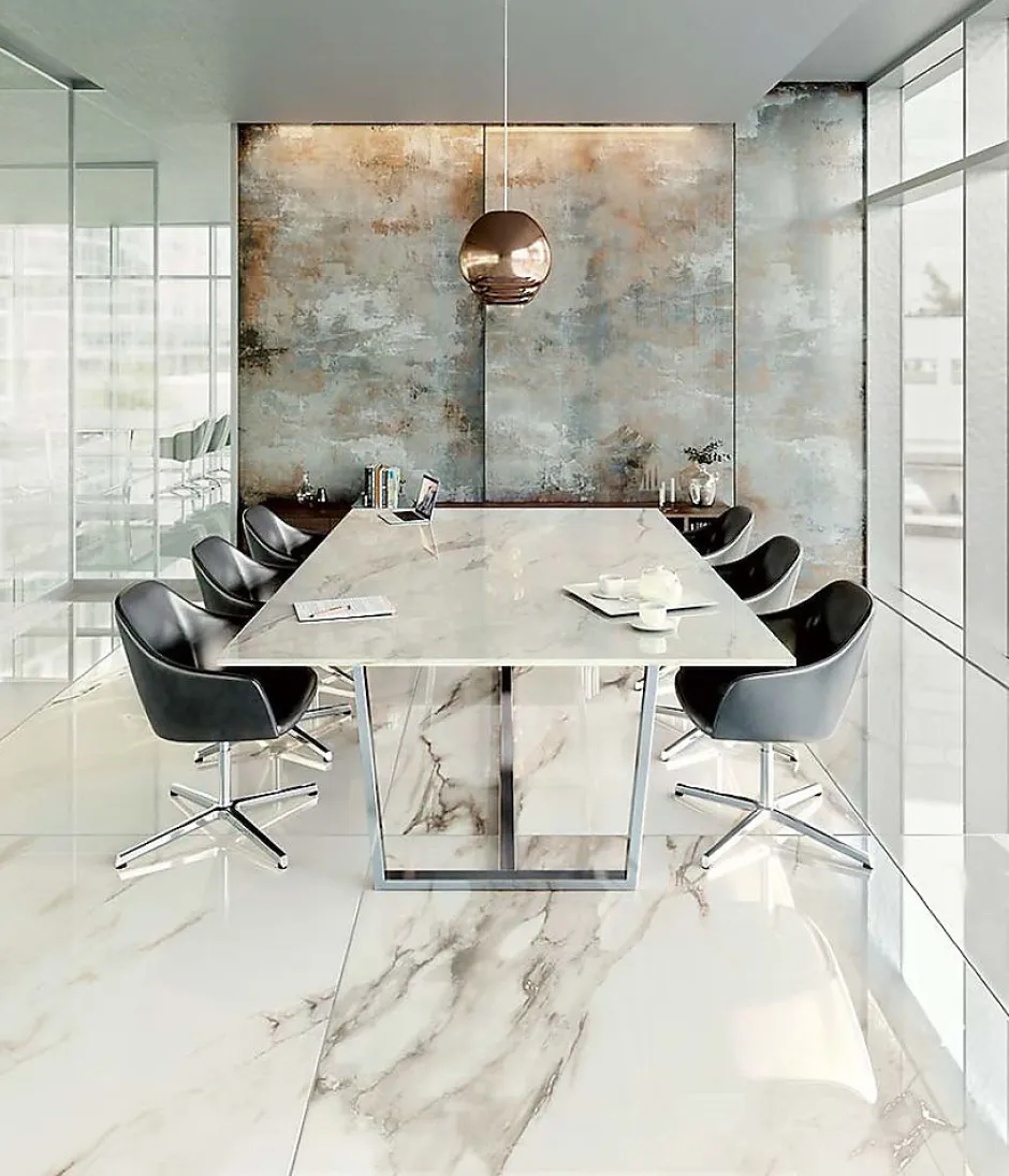 Notre collection de grès cérame Calacatta ajoute des stries allant du gris au beige à la pureté du blanc pour embellir les espaces d’ameublement avec l’élégance de la pierre de marbre. En plus des formats traditionnels, la série combine les grandes dalles qui offrent la possibilité de créer des solutions décoratives extraordinaires, non seulement pour le revêtement des sols et des murs mais aussi pour les tables, les comptoirs, les receveurs de douche, portes et autres solutions d’application.