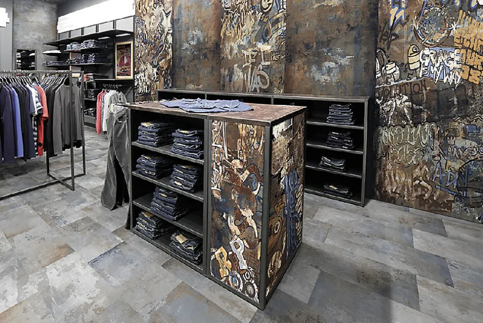 Des surfaces brillantes, capables d’interpréter fidèlement l’oxydation des métaux et des décorations inspirées des graffitis de la grande métropole font de la collection City Plaster un produit moderne idéal pour caractériser les environnements résidentiels et commerciaux avec un look décisif et urbain. Tout cela est renforcé par les grandes dalles qui assurent une polyvalence maximale dans le revêtement de sol et de revêtement de toute surface verticale, combiné avec la décoration Graffiti, il rendra l’espace encore plus spectaculaire.
