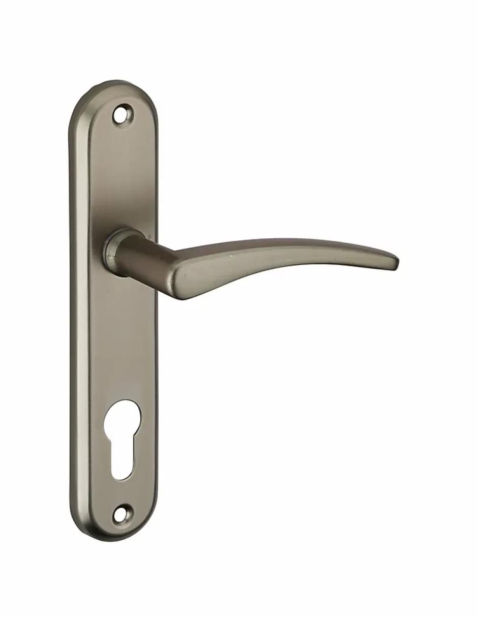 L’ensemble de poignées VestaEsthétiques et pratiques, les poignées Vesta, de la marque Thirard, permettent d’ouvrir et de refermer votre porte. L’ensemble est conçu en aluminium embouti, et de couleur nickelé satiné. Cet ensemble de poignées Vesta est destiné à être placé sur votre porte d’entrée. Ce modèle est également disponible en de nombreuses déclinaisons (à condamnation, avec trou de clé, sans trou). Comment choisir sa poignée ?Deux dimensions permettent de prendre les mesures de sa poignée :L’entr’axes de fixation : Cette mesure se prend entre les deux visses qui permettent de fixer les plaques sur la porte.L’entr’axes : Cette mesure se prend entre le milieu carré (là où les béquilles passent) au milieu du trou de fonction (cylindre, entrée de clé ou encore condamnation).Et ensuite ? Rien de plus simple ! Vous n’avez besoin que d’un mètre et d’un tournevis. Démontez si besoin l’ensemble de poignées existant. Il vous faudra ensuite mesurer la taille du carré. Le carré est la barre qui permet de solidariser votre ensemble. Il existe des carrés de différentes tailles : 6, 7 ou 8mm. Il faut ensuite mesurer l’entr’axes, c’est-à-dire entre les deux vis de fixation. Il existe une autre mesure à prendre en compte si vous installez une poignée à trou de cylindre : l’entr’axes entre le trou destiné au cylindre et le carré de votre poignée. Vous pourrez ensuite faire l’acquisition de vos nouvelles poignées en accord avec votre décoration, votre porte et votre besoin. Installez l’ensemble sur votre porte et, si besoin, ajustez la longueur de la vis. Les vis sont sécables et prévues pour être recoupées. Revissez l’ensemble et vérifiez le fonctionnement de votre nouvelle paire de poignées.