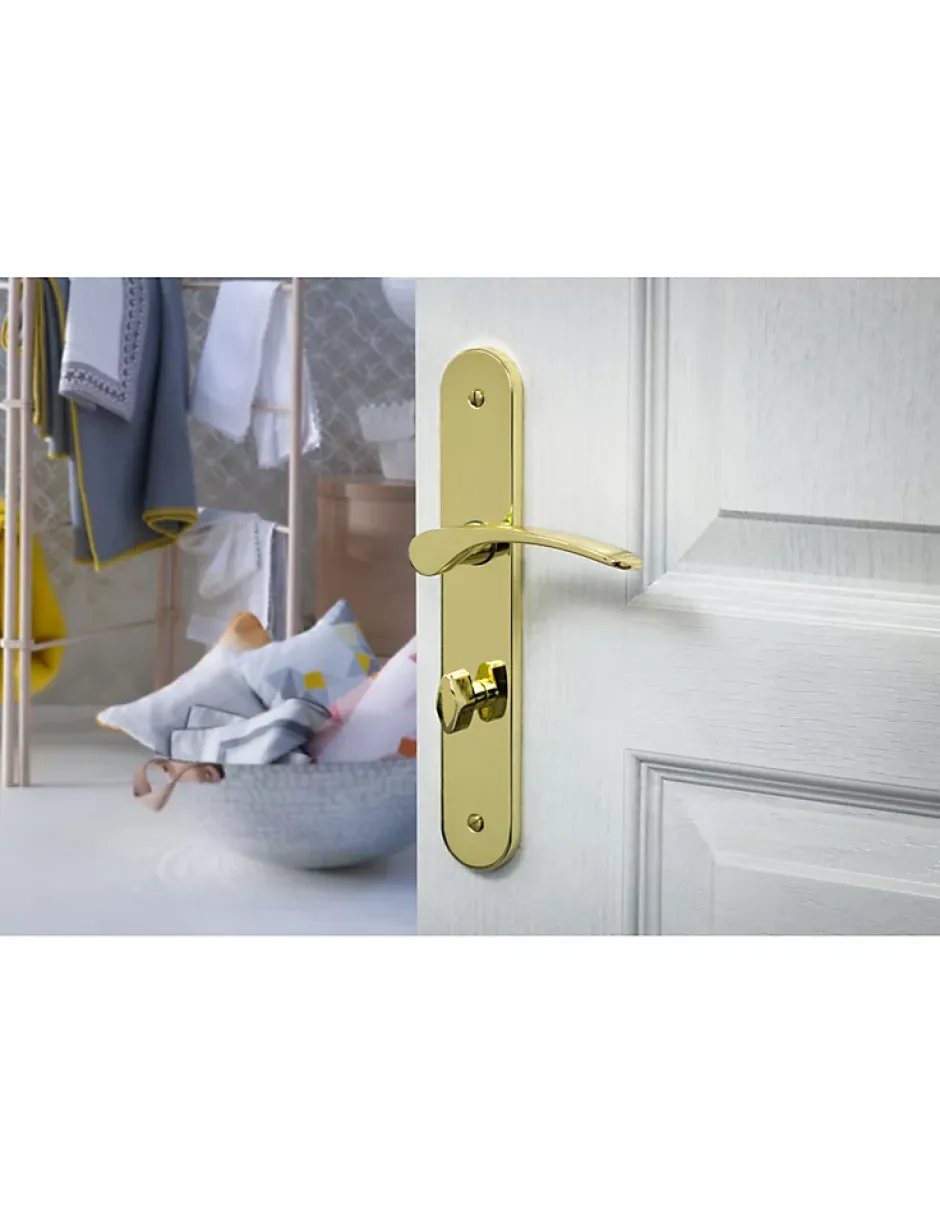 L’ensemble de poignées DionysosEsthétiques et pratiques, les poignées Dionysos, de la marque Thirard, permettent d’ouvrir et de refermer votre porte. L’ensemble est conçu en acier embouti, et de couleur laiton. Cet ensemble de poignées Dionysos est destiné à être placé sur votre salle de bain et toilette. Ce modèle est également disponible en de nombreuses déclinaisons (avec trou de clé, avec trou de cylindre, sans trou). Comment choisir sa poignée ?Deux dimensions permettent de prendre les mesures de sa poignée :L’entr’axes de fixation : Cette mesure se prend entre les deux visses qui permettent de fixer les plaques sur la porte.L’entr’axes : Cette mesure se prend entre le milieu carré (là où les béquilles passent) au milieu du trou de fonction (cylindre, entrée de clé ou encore condamnation).Et ensuite ? Rien de plus simple ! Vous n’avez besoin que d’un mètre et d’un tournevis. Démontez si besoin l’ensemble de poignées existant. Il vous faudra ensuite mesurer la taille du carré. Le carré est la barre qui permet de solidariser votre ensemble. Il existe des carrés de différentes tailles : 6, 7 ou 8mm. Il faut ensuite mesurer l’entr’axes, c’est-à-dire entre les deux vis de fixation. Il existe une autre mesure à prendre en compte si vous installez une poignée à trou de cylindre : l’entr’axes entre le trou destiné au cylindre et le carré de votre poignée. Vous pourrez ensuite faire l’acquisition de vos nouvelles poignées en accord avec votre décoration, votre porte et votre besoin. Installez l’ensemble sur votre porte et, si besoin, ajustez la longueur de la vis. Les vis sont sécables et prévues pour être recoupées. Revissez l’ensemble et vérifiez le fonctionnement de votre nouvelle paire de poignées.