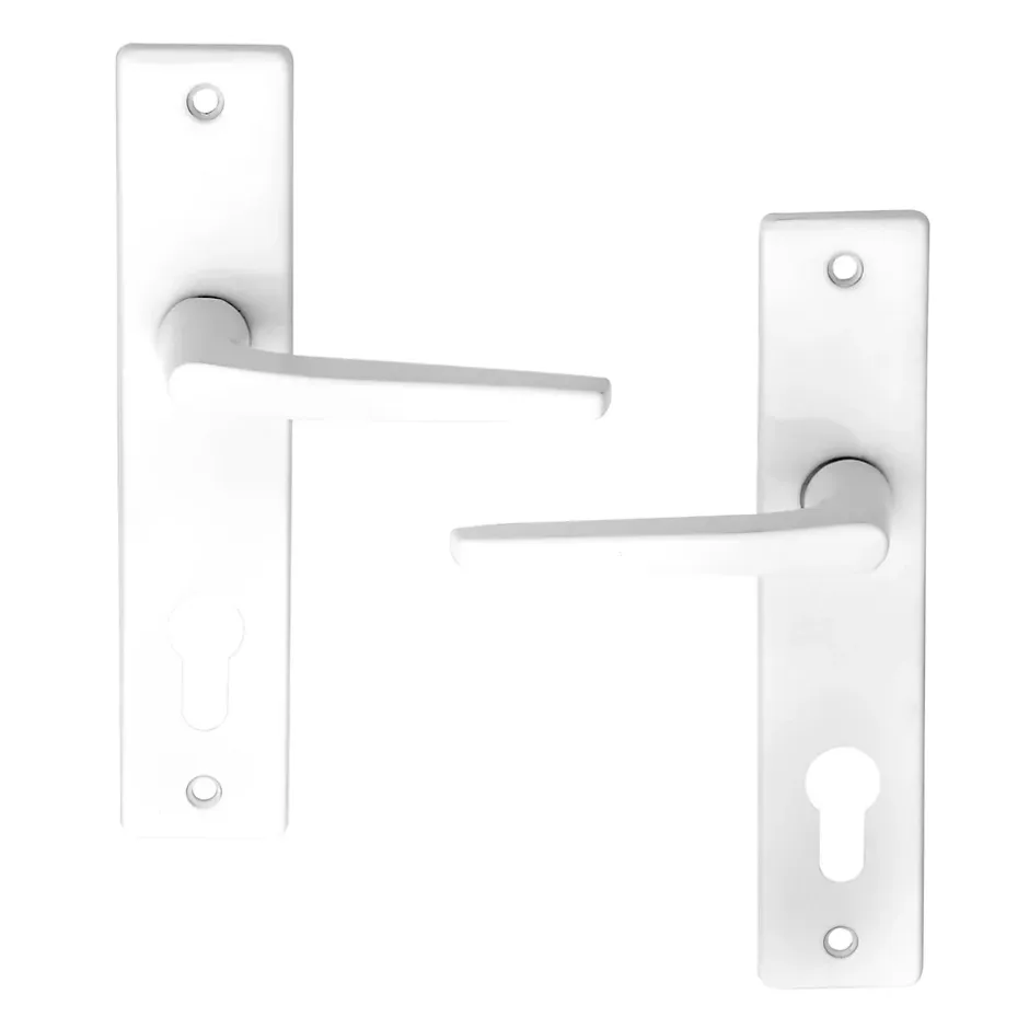Ensemble poignée sur plaque cylindre rectangulaire Colan satin blanc L.106mm x l.39.8mm entraxe 165mm