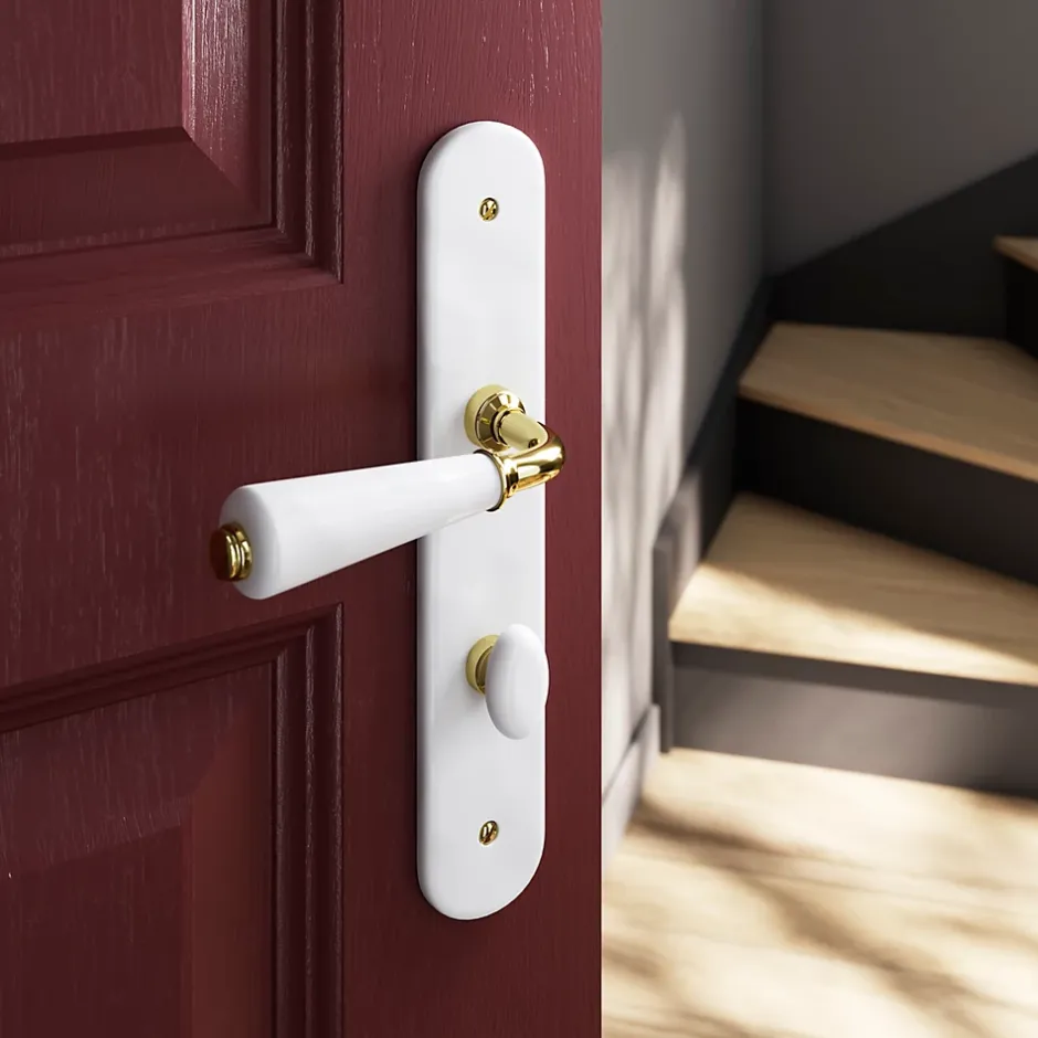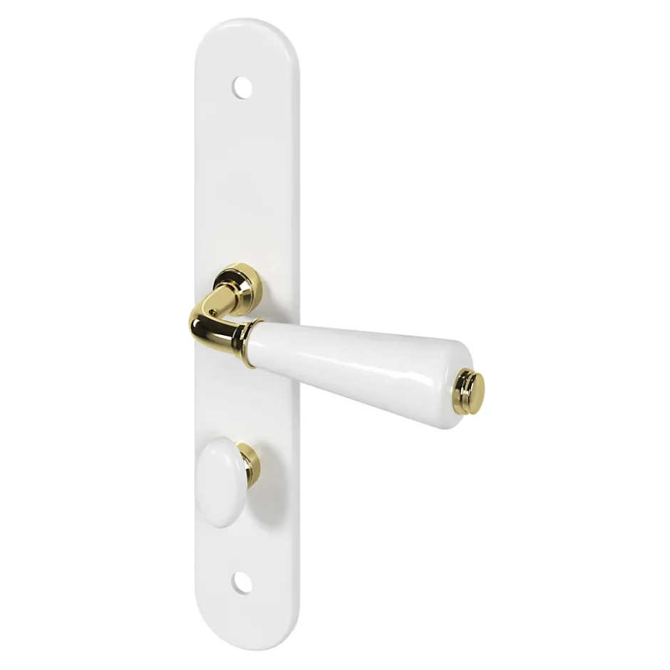 Ensemble poignée sur plaque Droit à condamnation GoodHome Porcelaine Vras blanc L.115mm x l.45mm entraxe 195mm