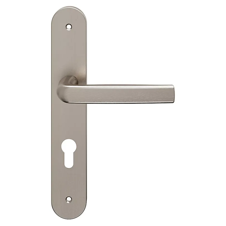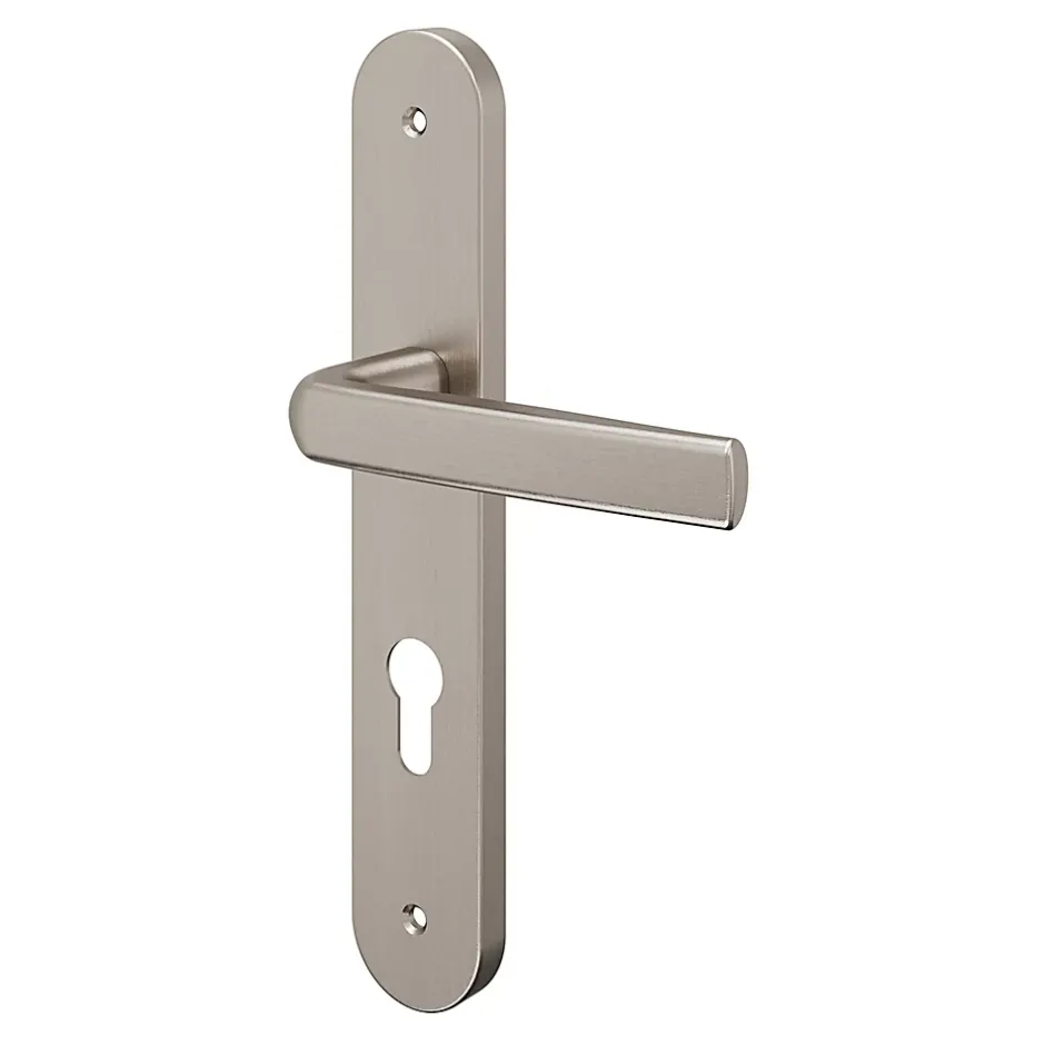 Ensemble poignée sur plaque Incurvé cylindre GoodHome Primel effet nickel satin gris L.126mm x l.40mm entraxe 195mm