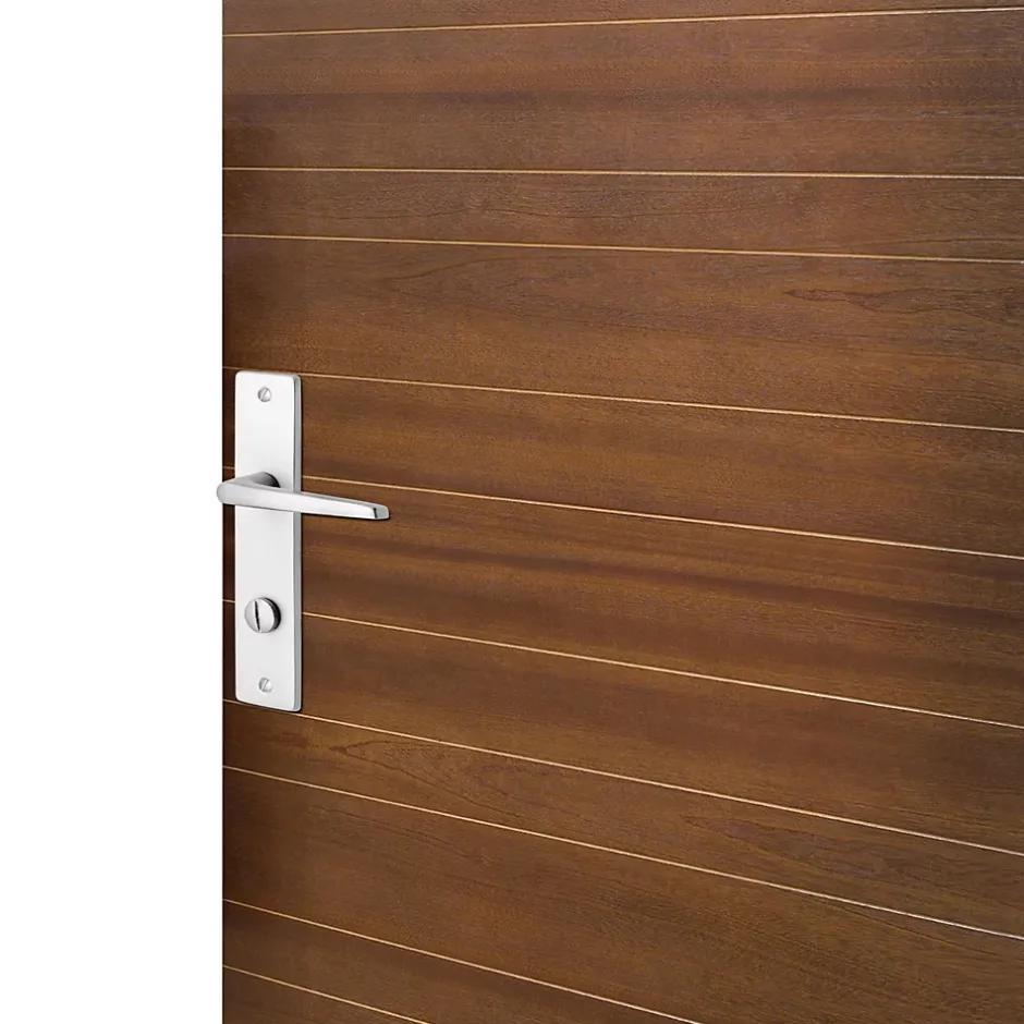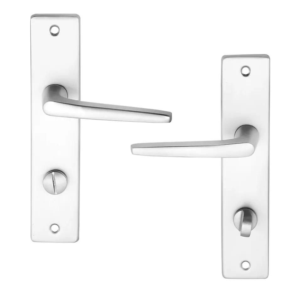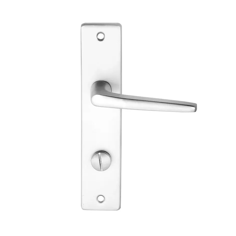 Ensemble poignée sur plaque rectangulaire à condamnation Colan effet argenté satin gris L.106mm x l.39.8mm entraxe 165mm