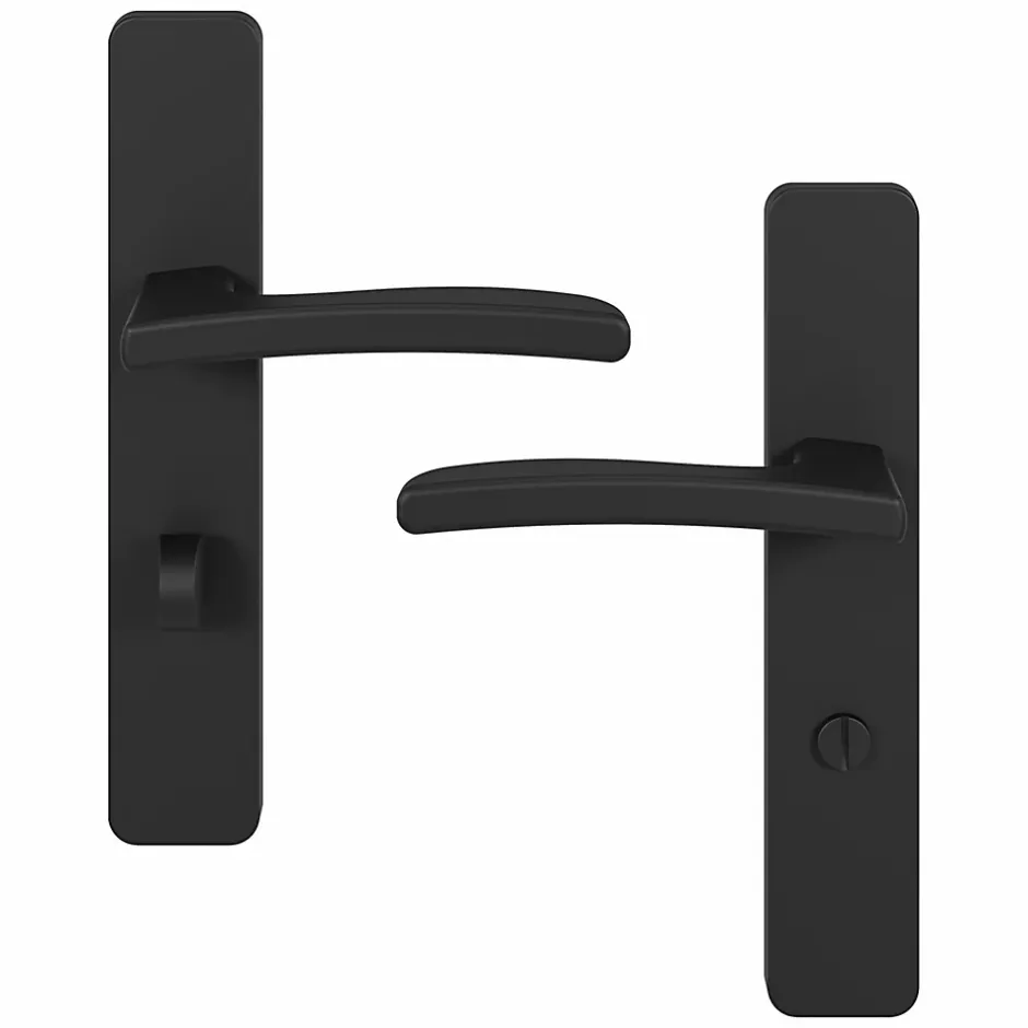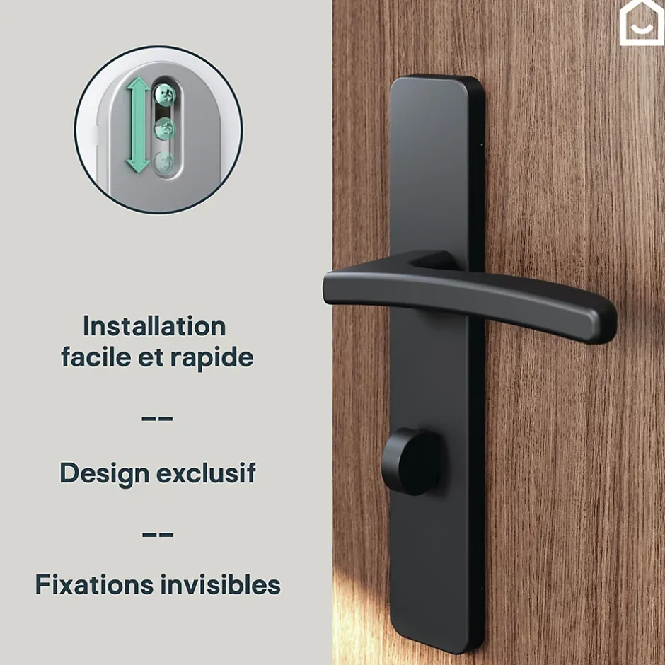 Ensemble poignée sur plaque rectangulaire à condamnation GoodHome Irvil effet nickel mat noir L.126.5mm x l.42mm entraxe 165-195mm